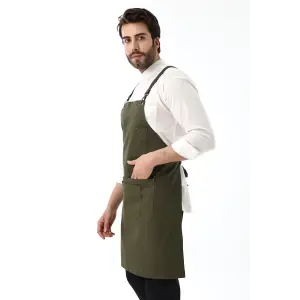 Barista Askılı Önlük Çift Cepli - Yeşil