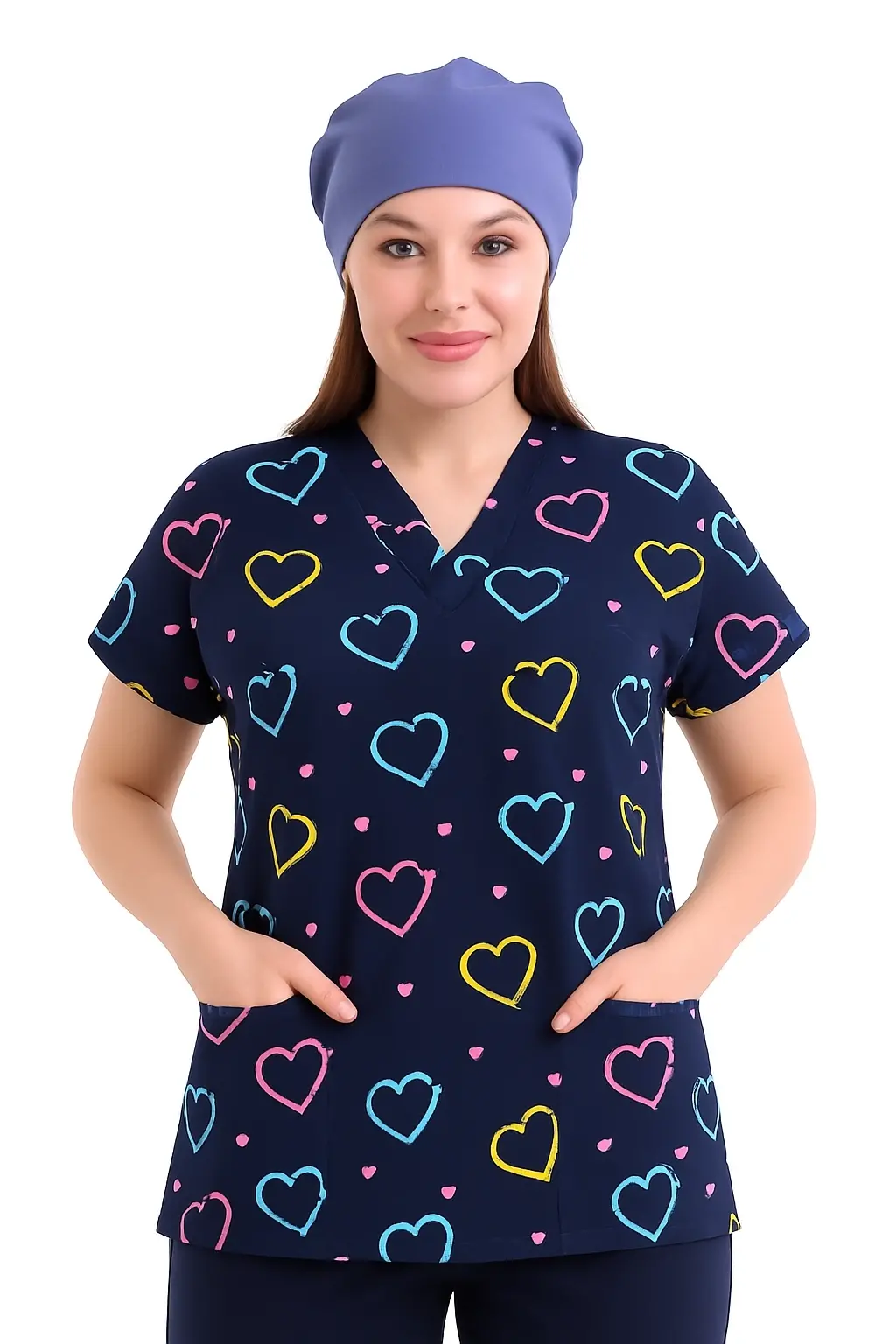 Yarasa Kol Desenli Tek Üst - 5029 Lacivert Kalp