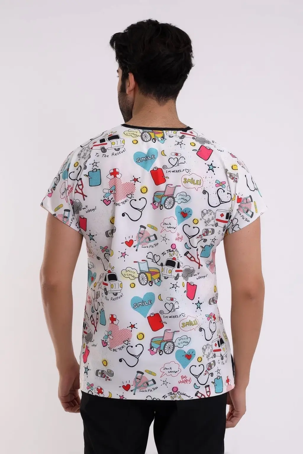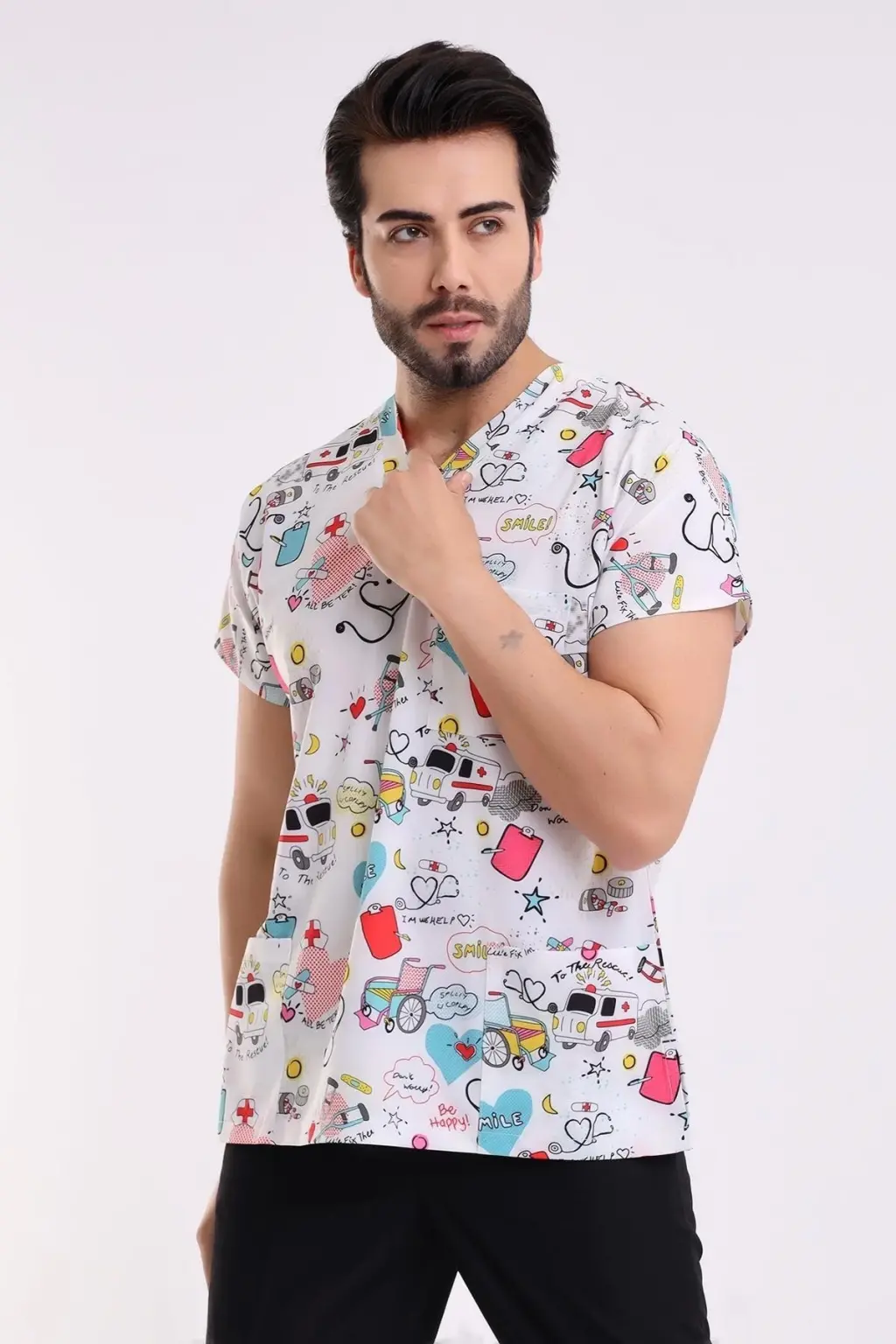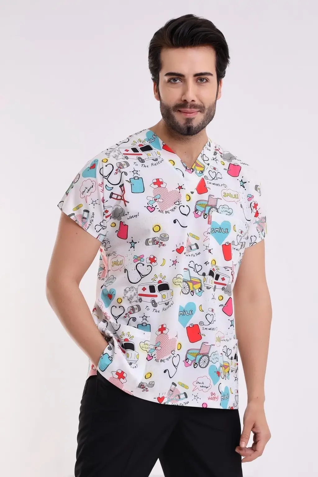 Yarasa Kol Dijital Unisex Desenli Üst - 6503 Beyaz Stetoskop