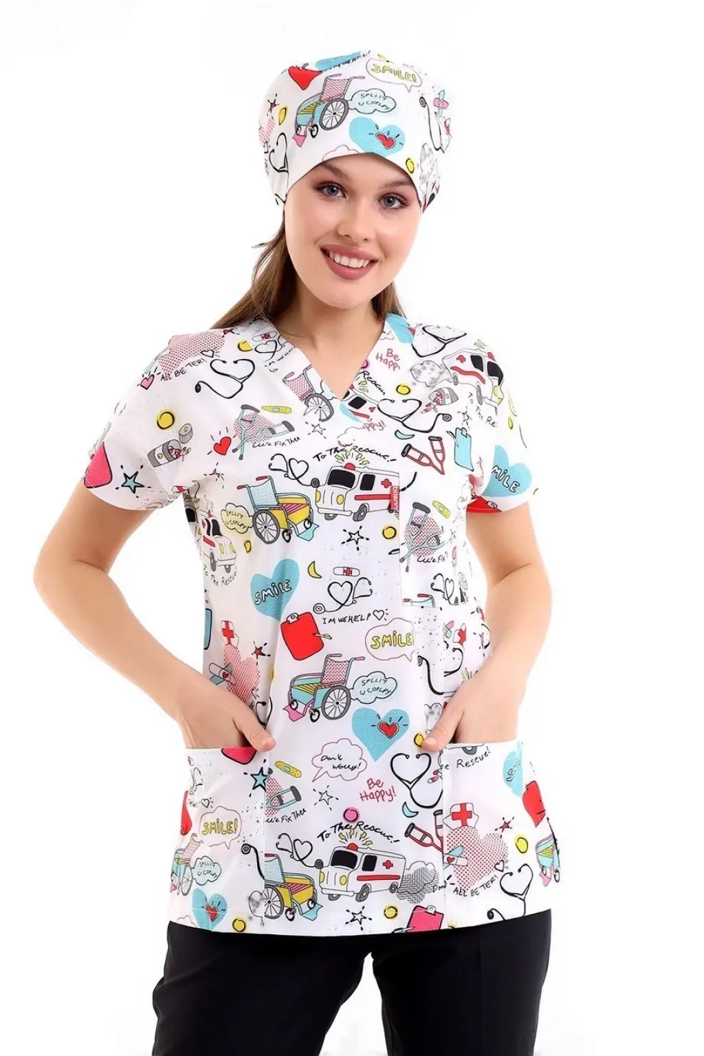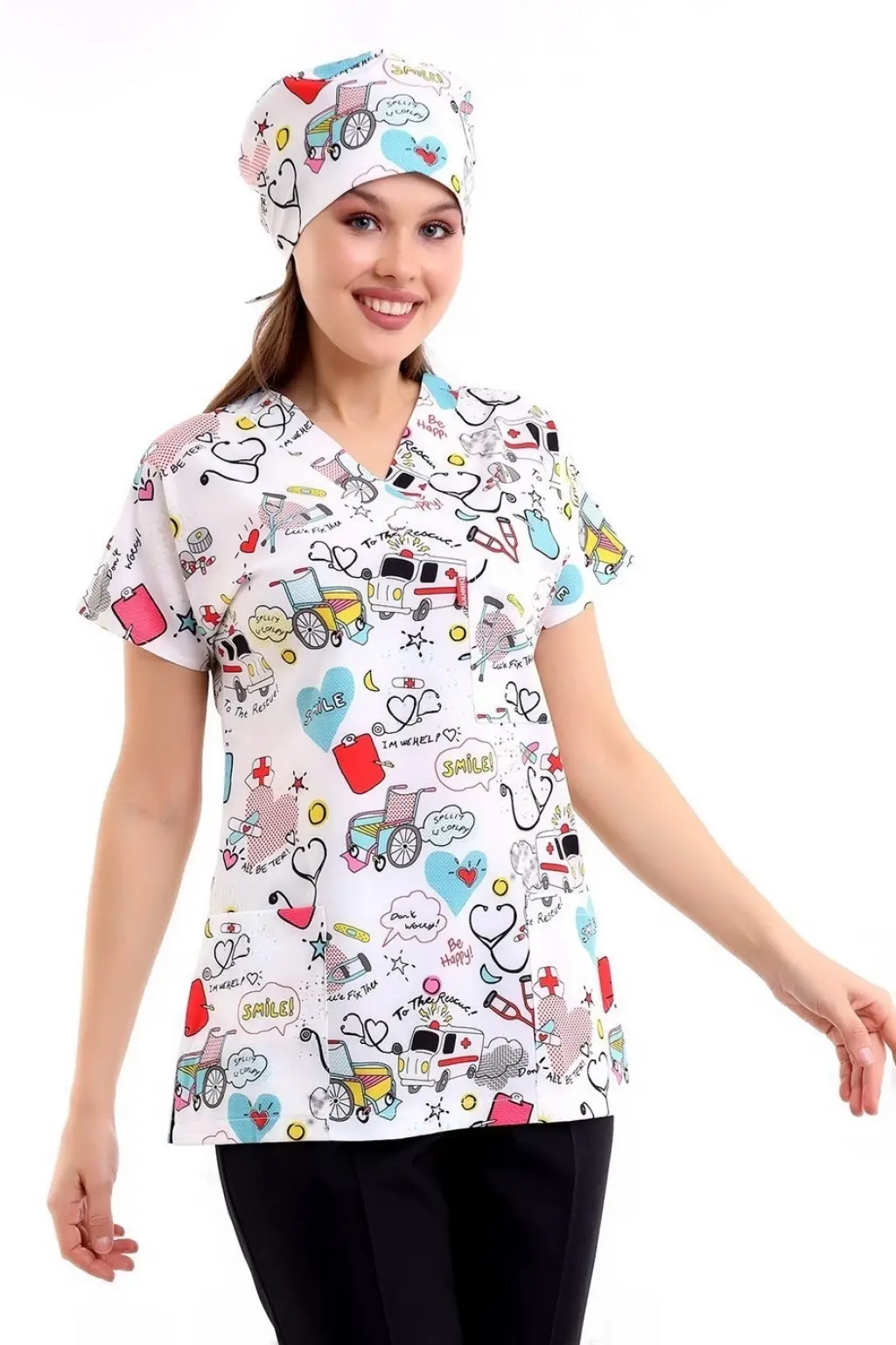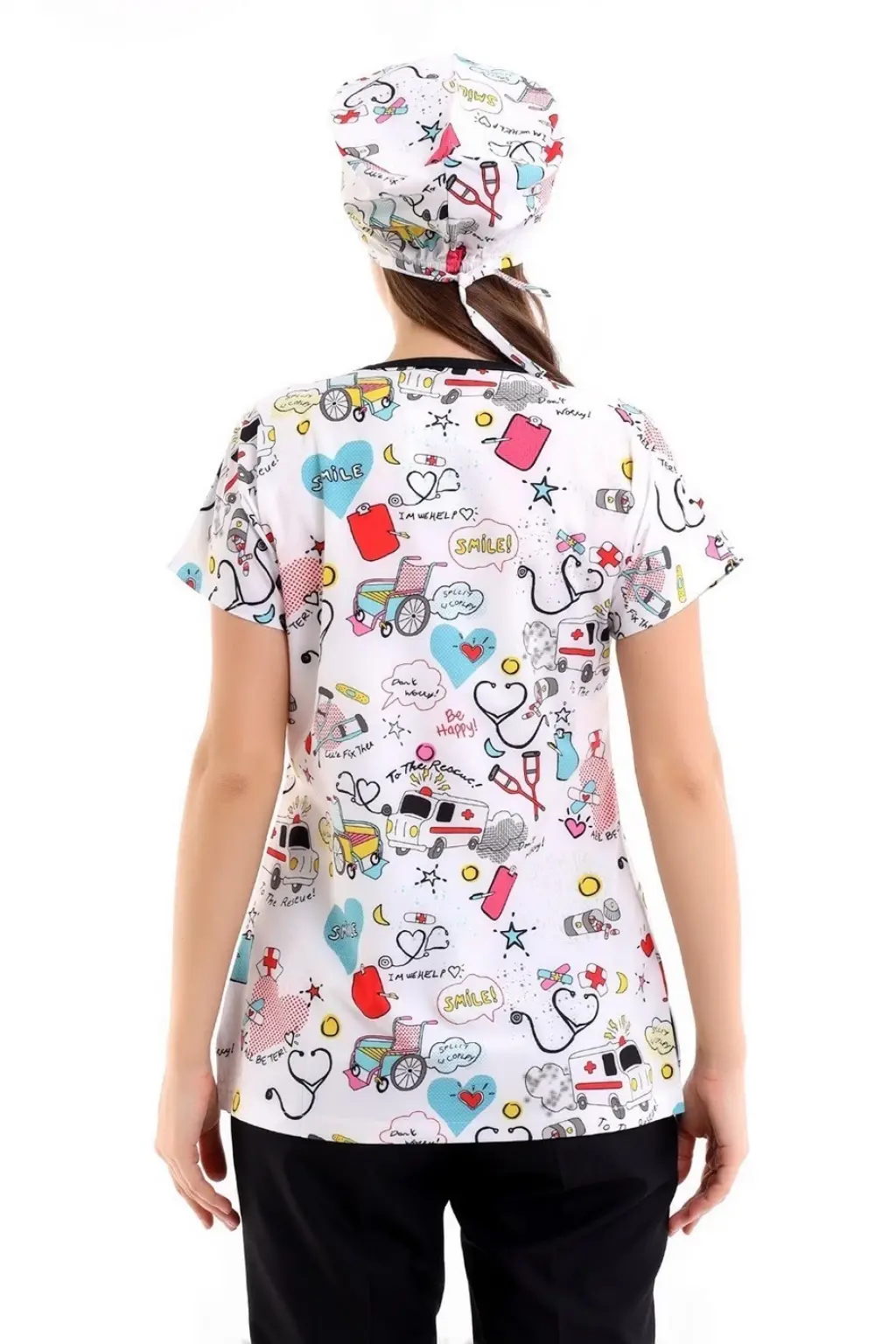 Yarasa Kol Dijital Unisex Desenli Üst - 6503 Beyaz Stetoskop
