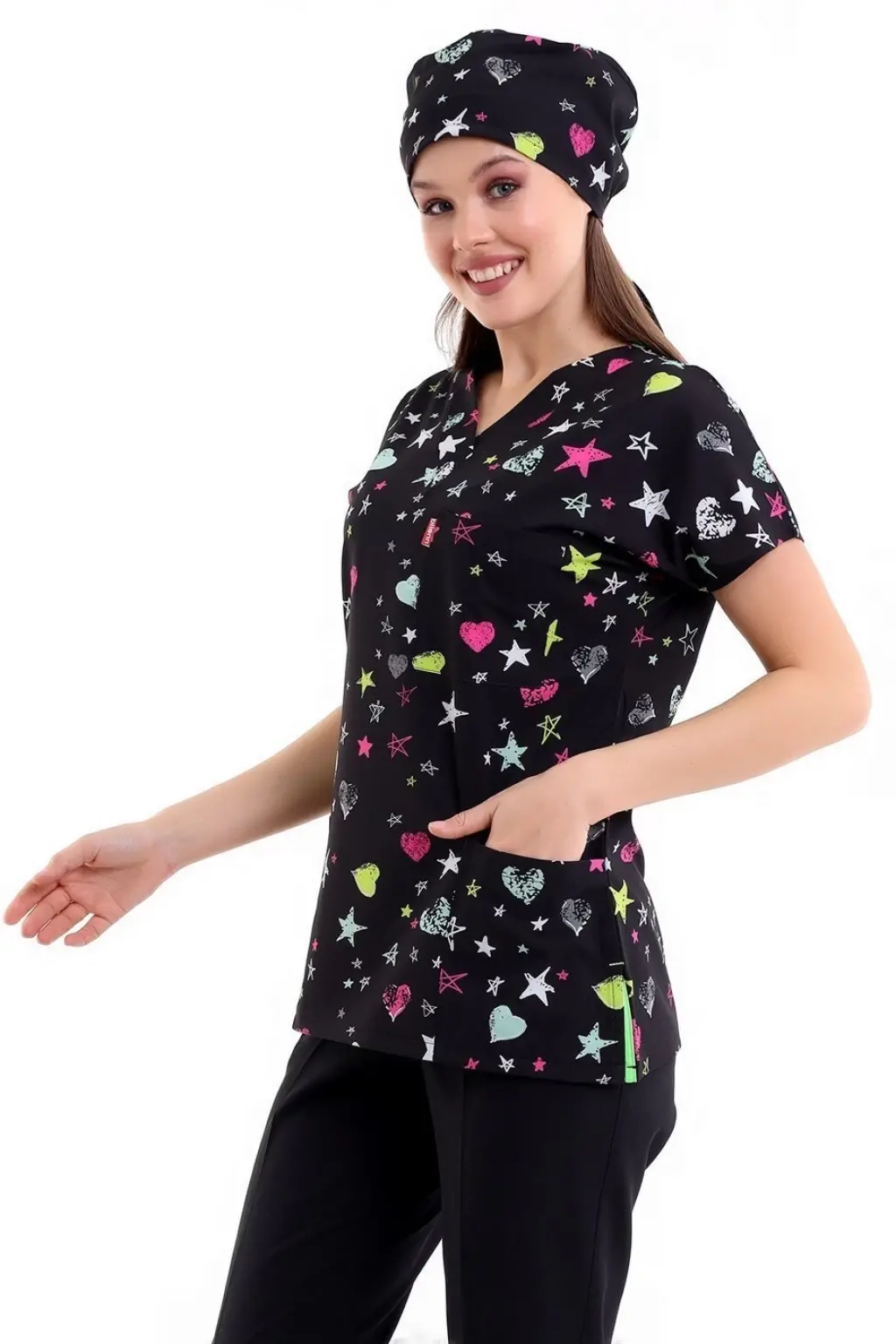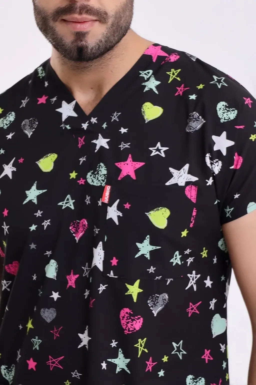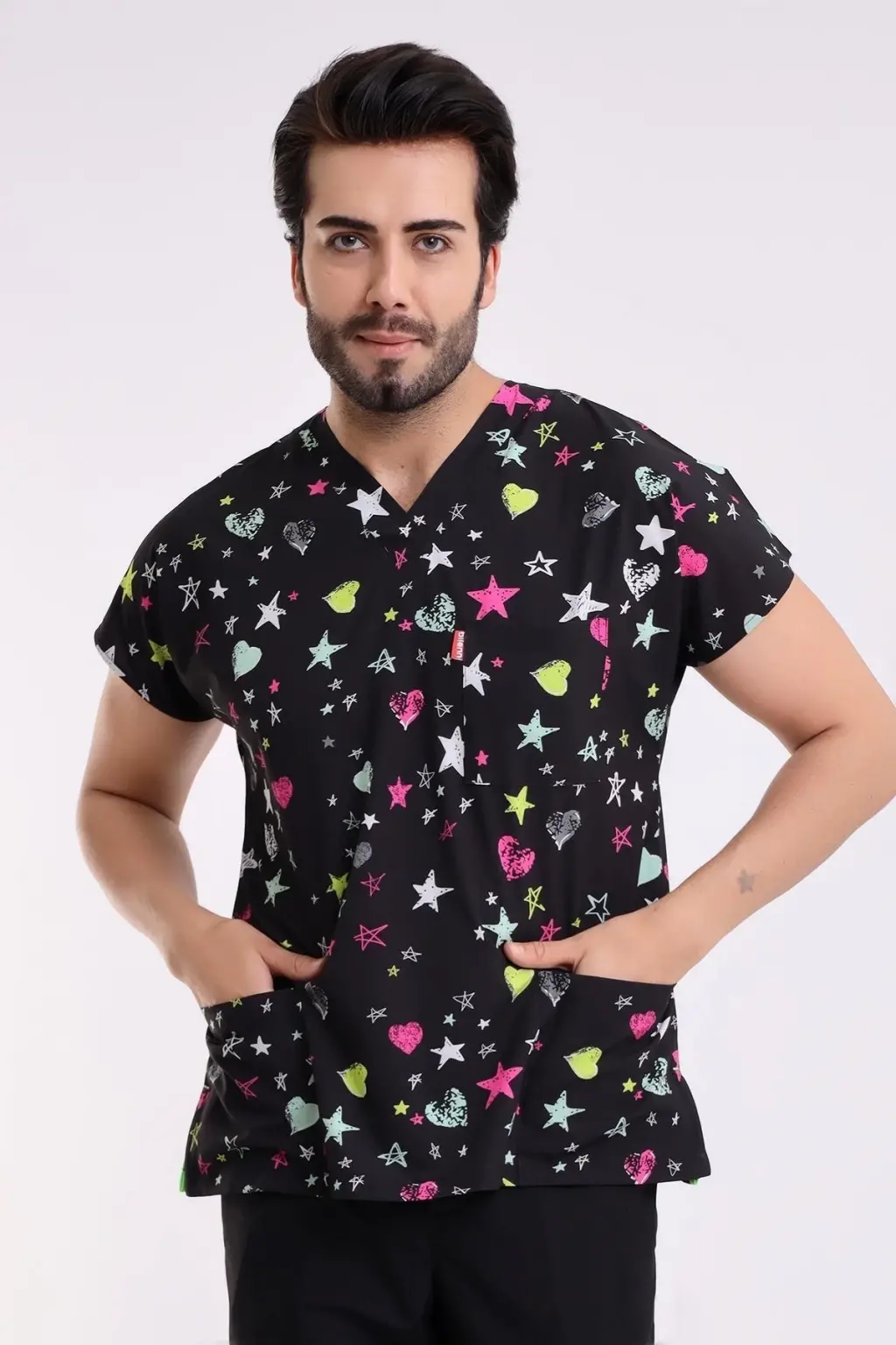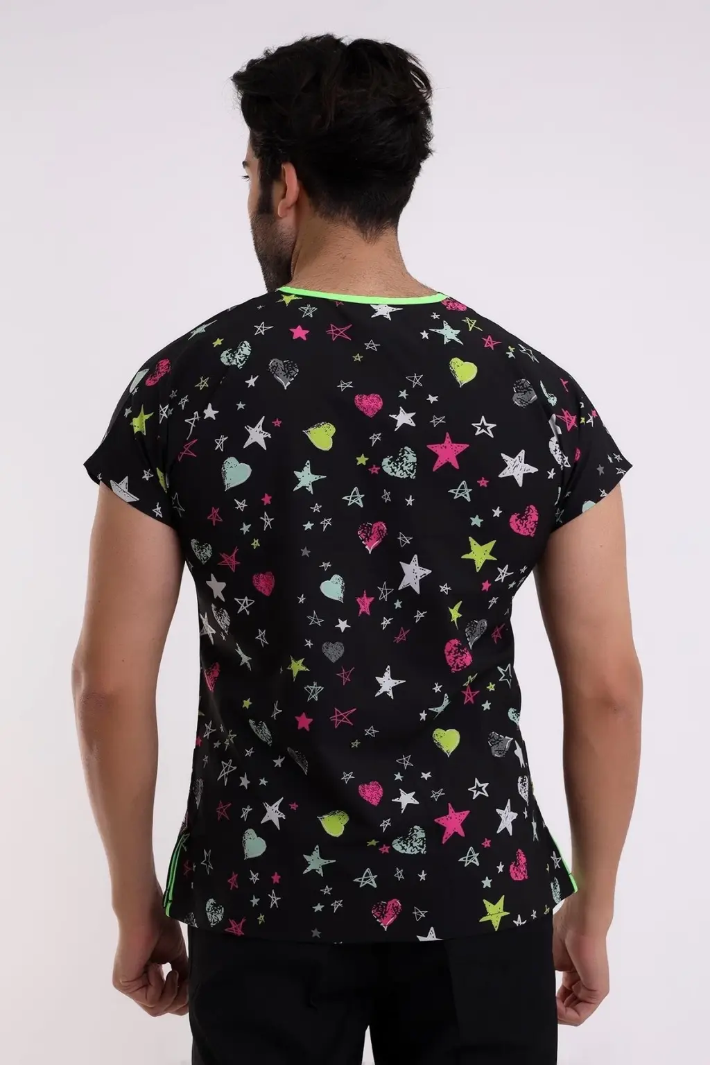 Yarasa Kol Dijital Unisex Desenli Üst - 6506 Siyah Yıldız Kalp