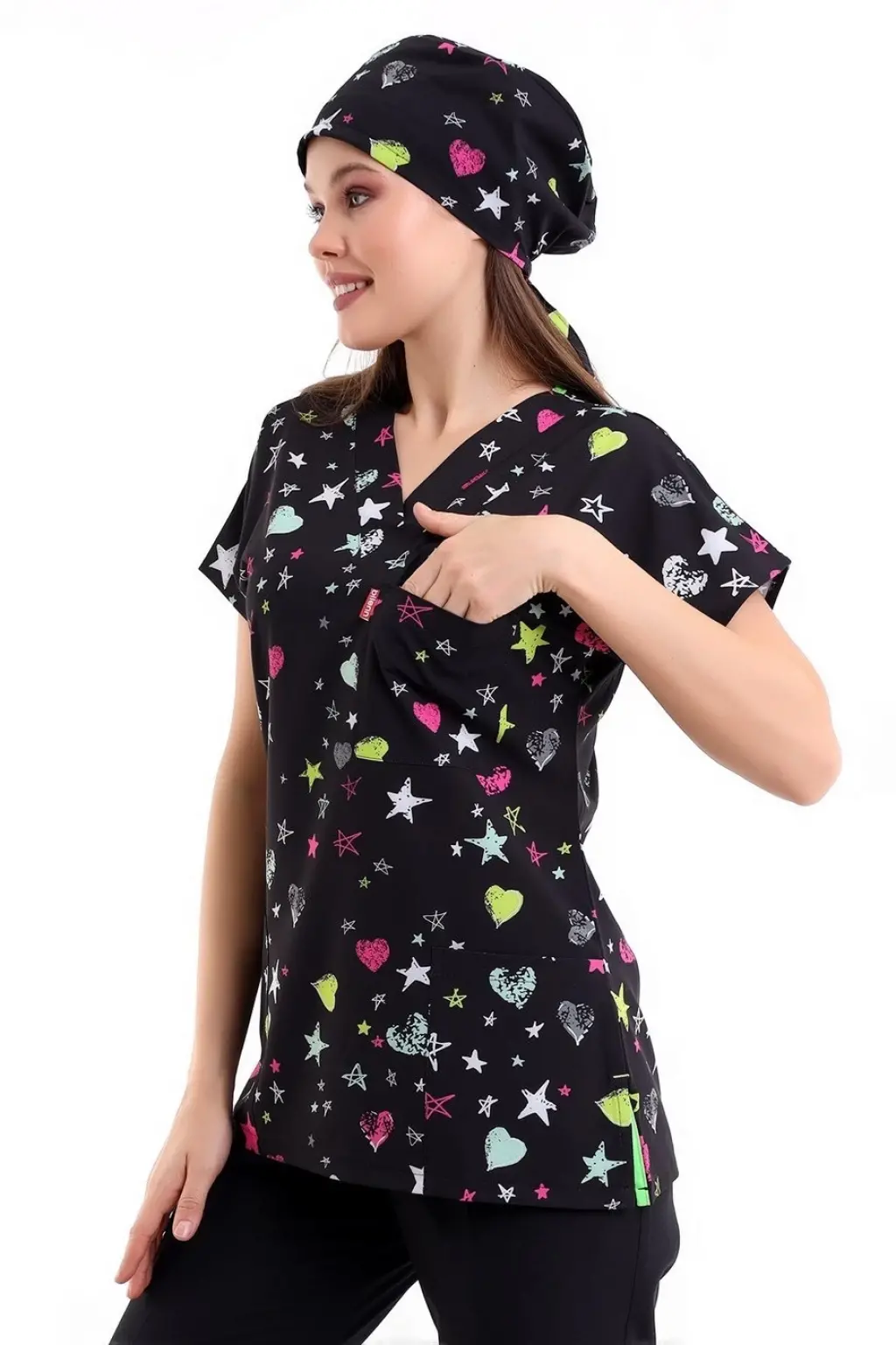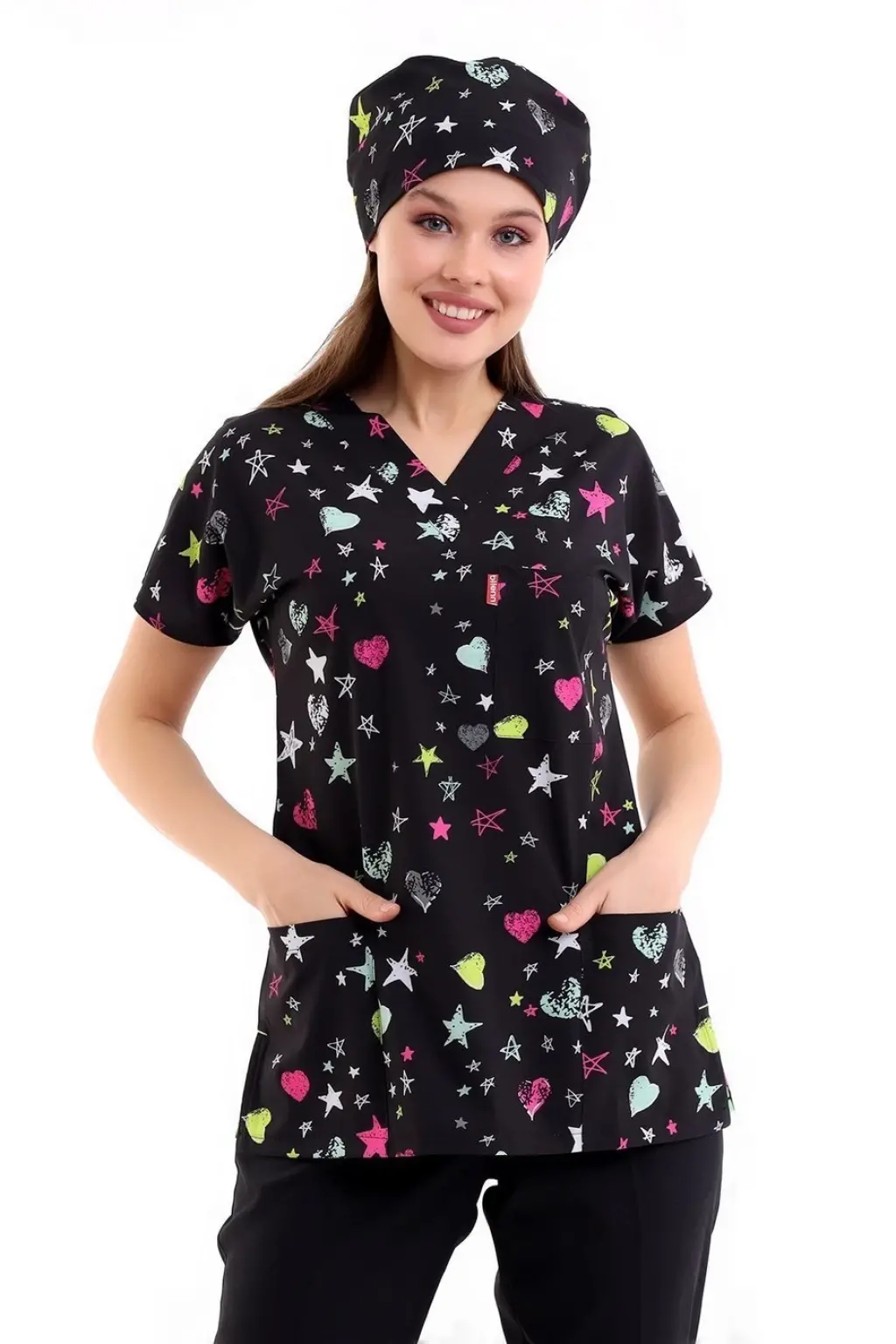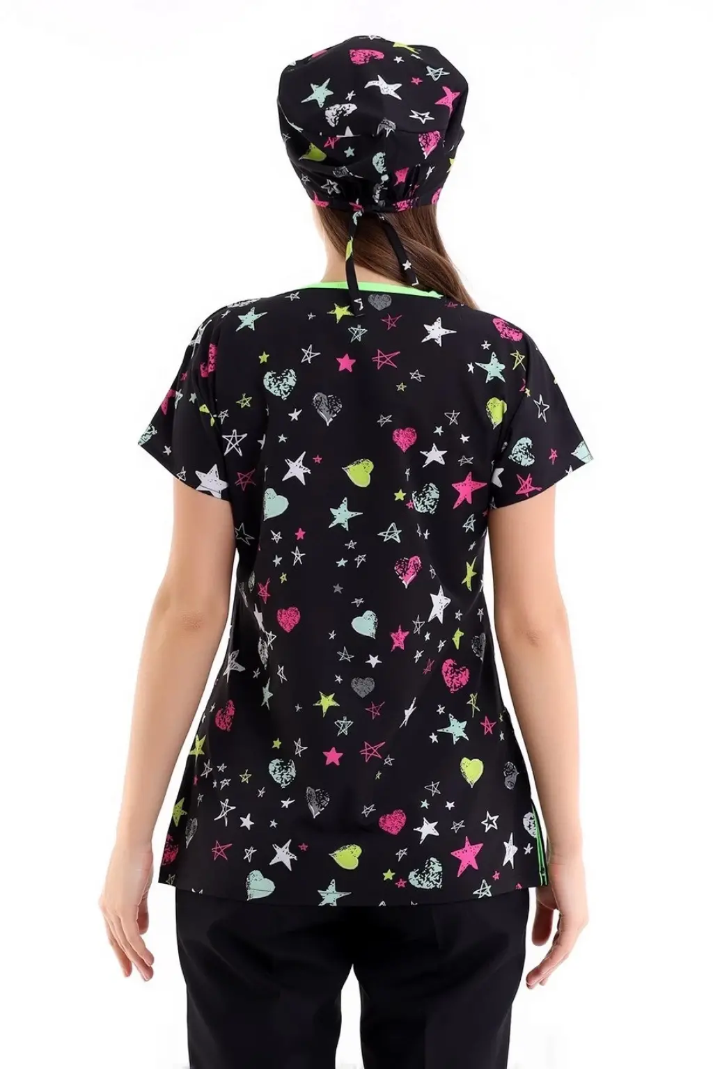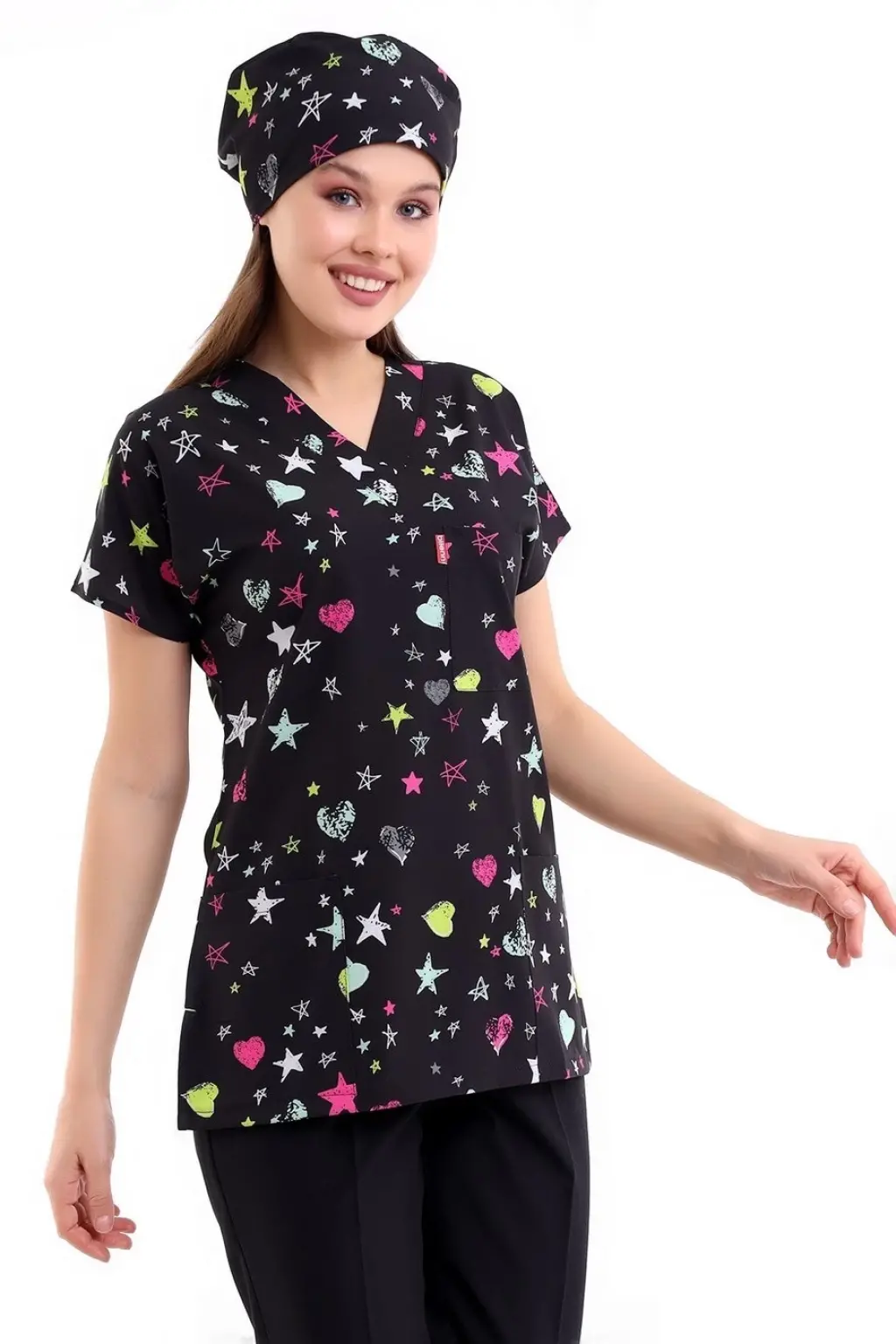 Yarasa Kol Dijital Unisex Desenli Üst - 6506 Siyah Yıldız Kalp
