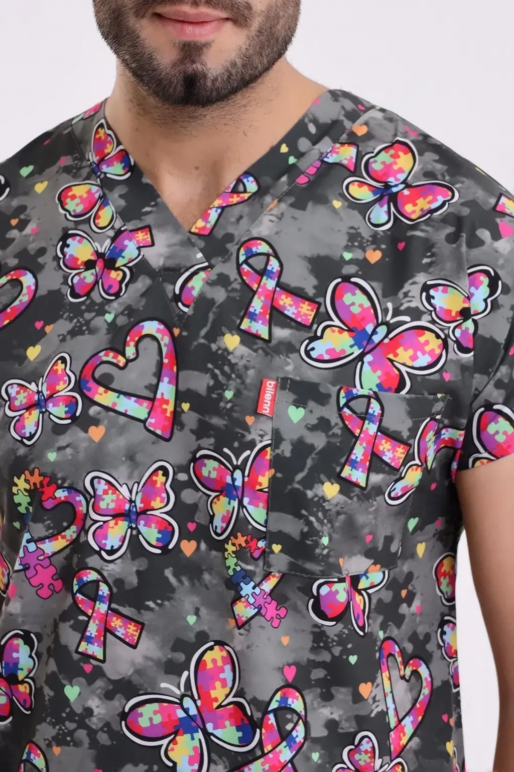 Yarasa Kol Dijital Unisex Desenli Üst - 6508 Siyah Kelebek