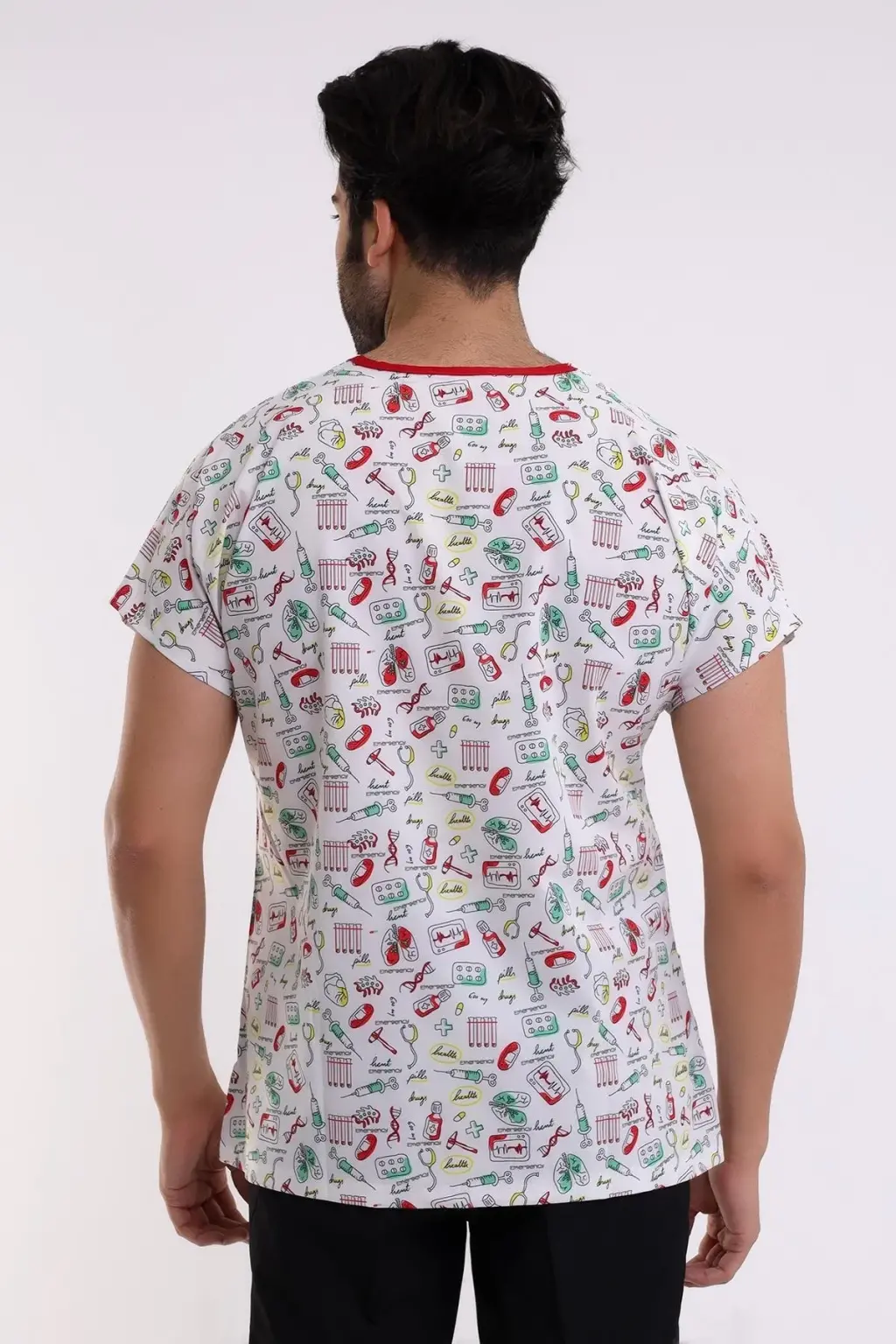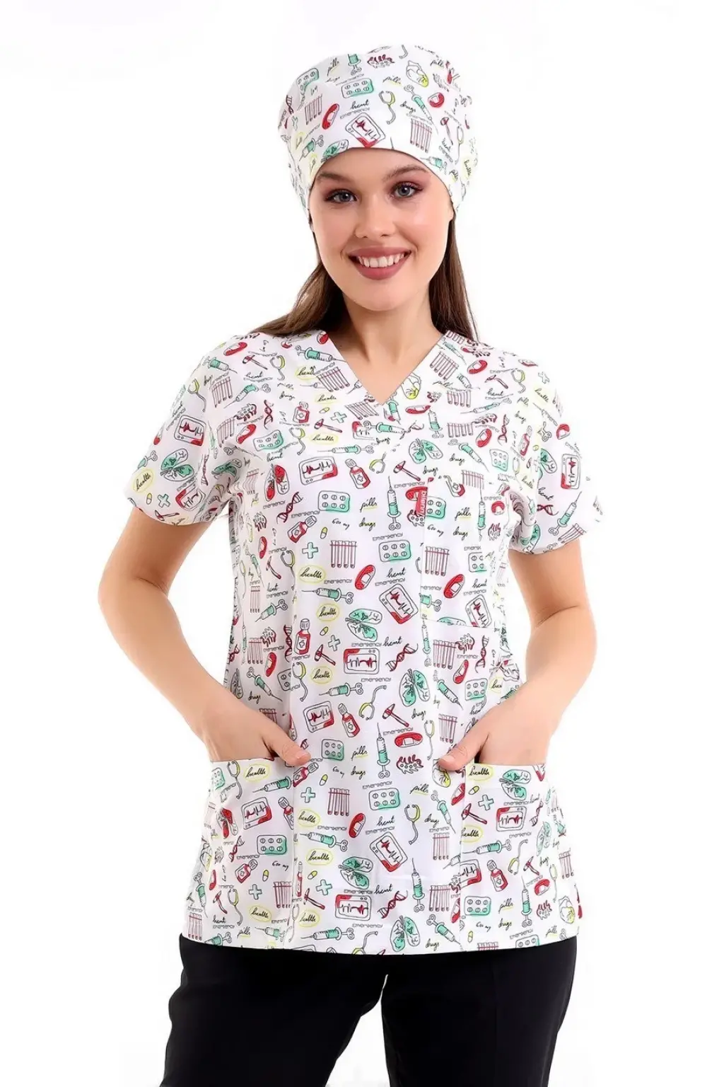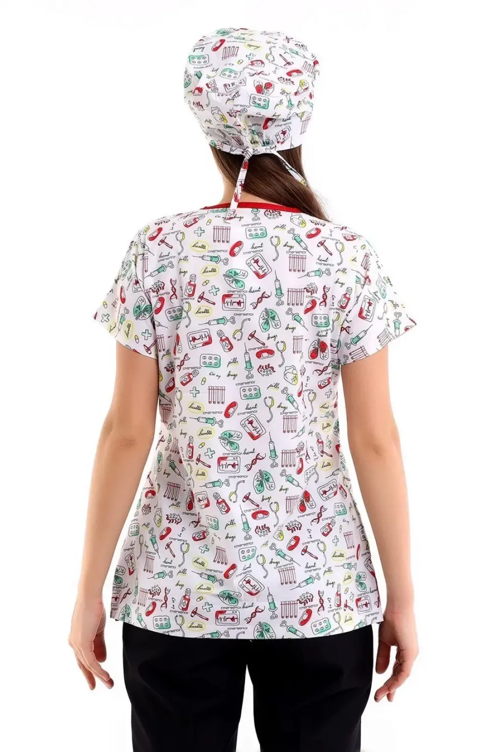 Yarasa Kol Dijital Unisex Desenli Üst - 6518 Beyaz Sağlık Sembolleri