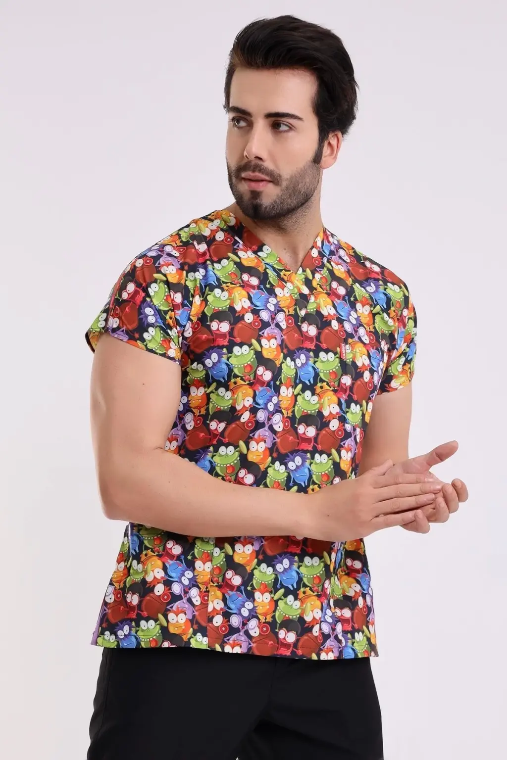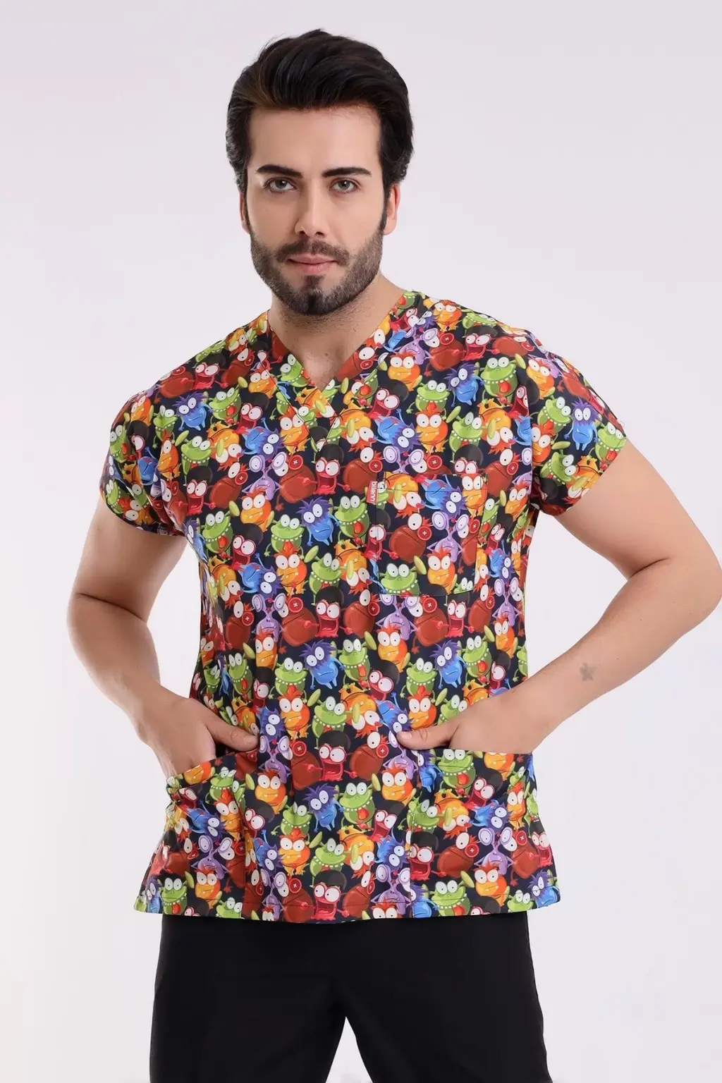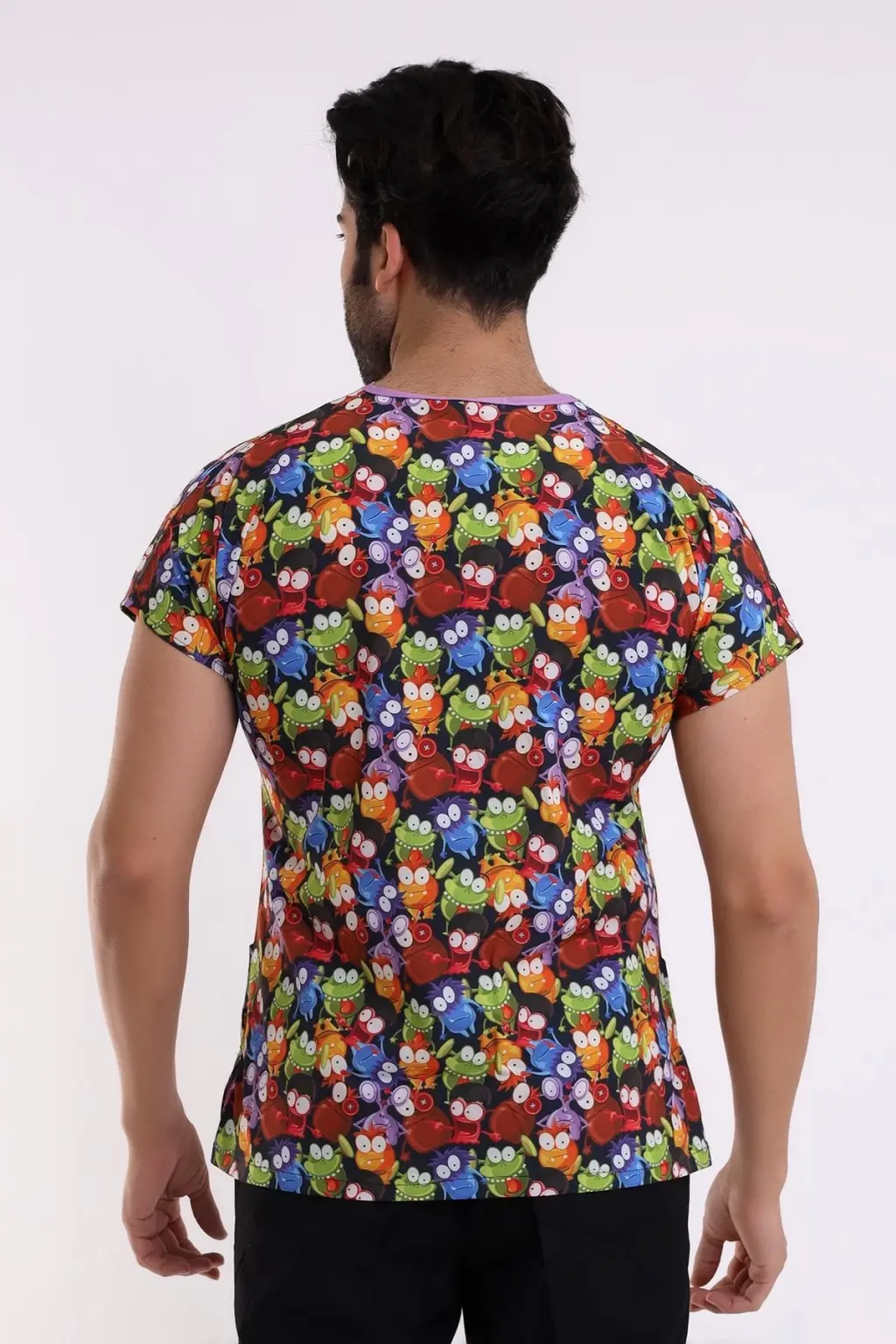 Yarasa Kol Dijital Unisex Desenli Üst - 6521 Mikrop Canavarlar