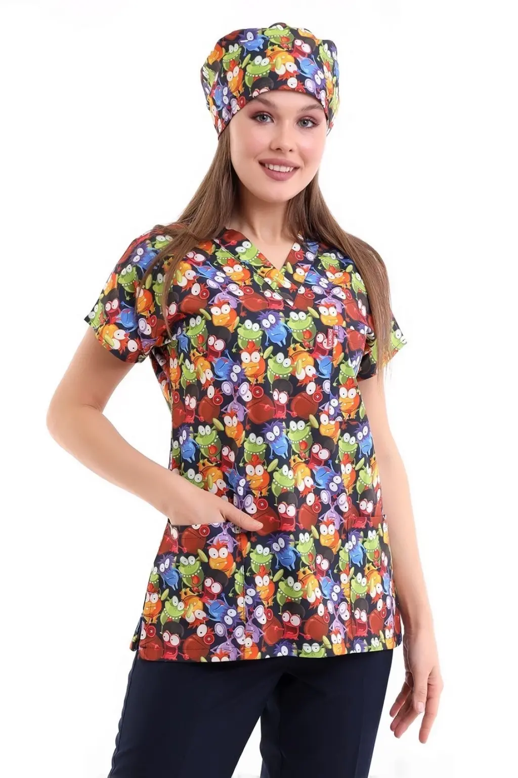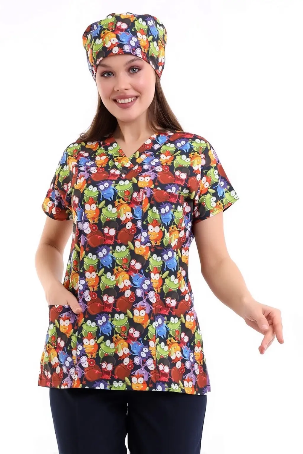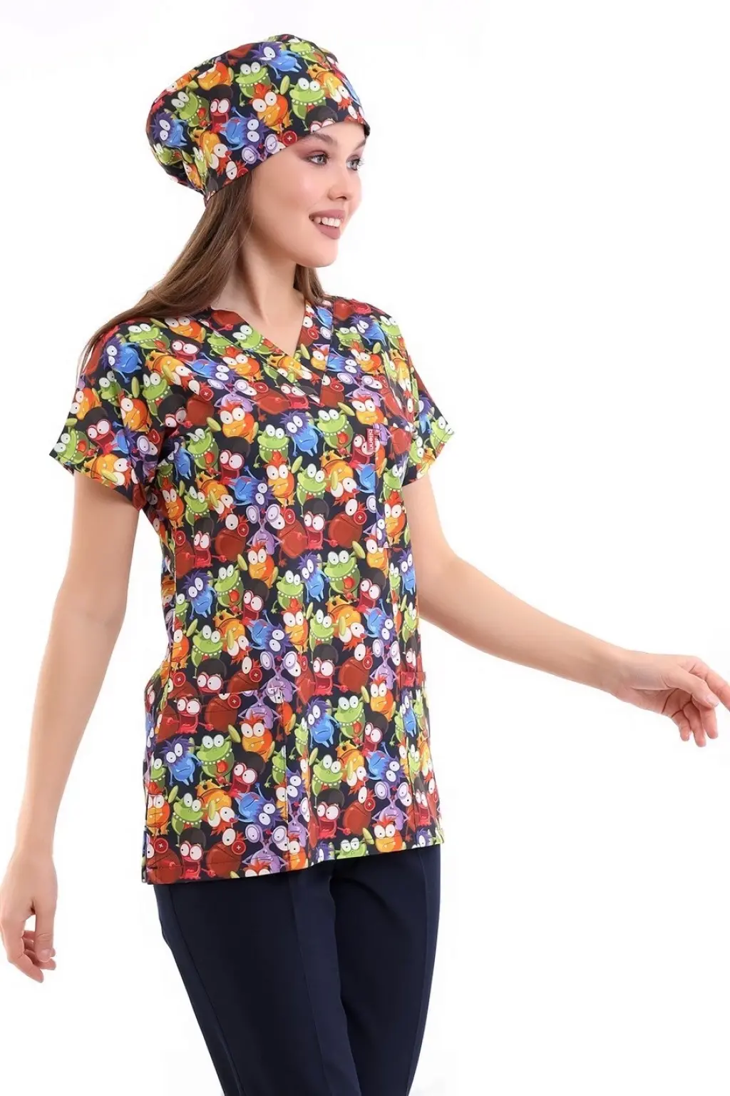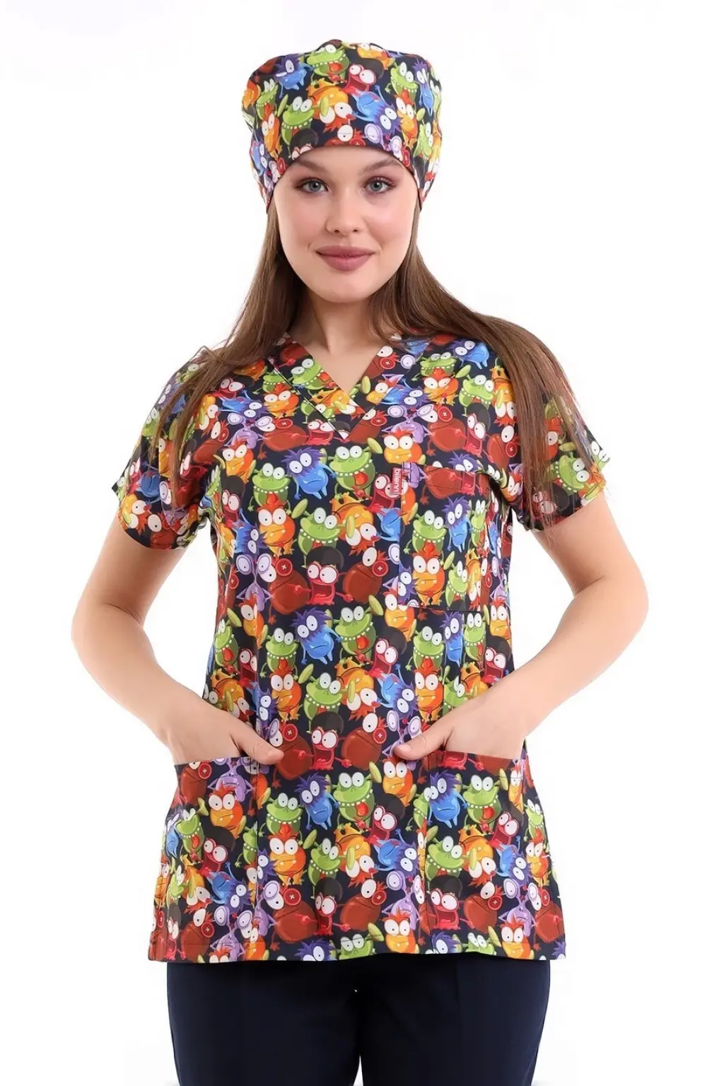 Yarasa Kol Dijital Unisex Desenli Üst - 6521 Mikrop Canavarlar