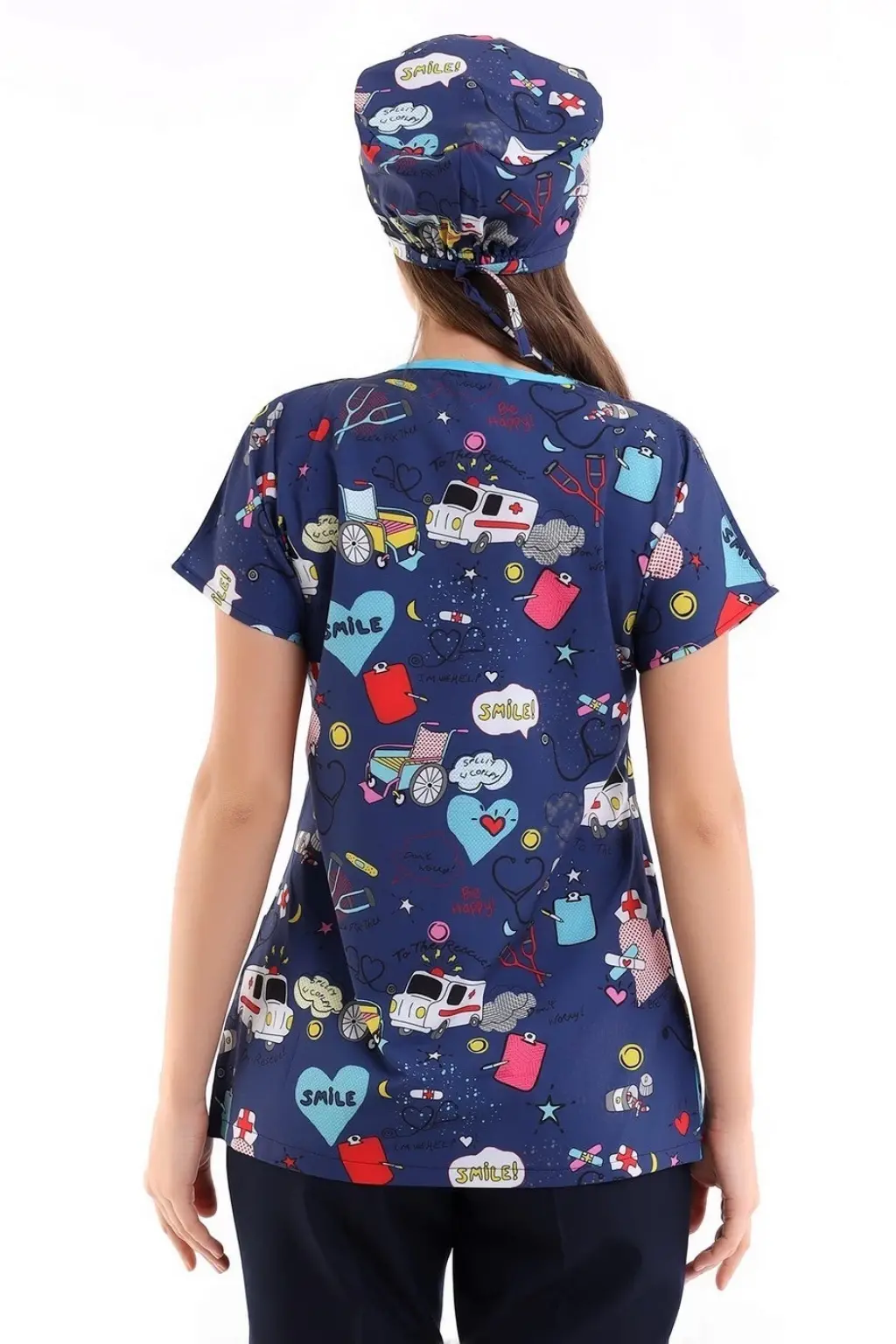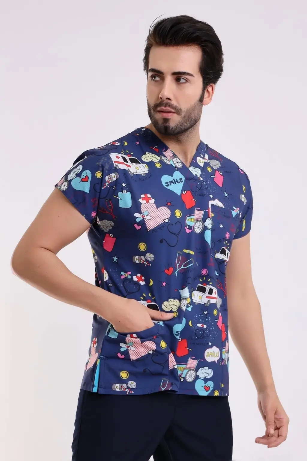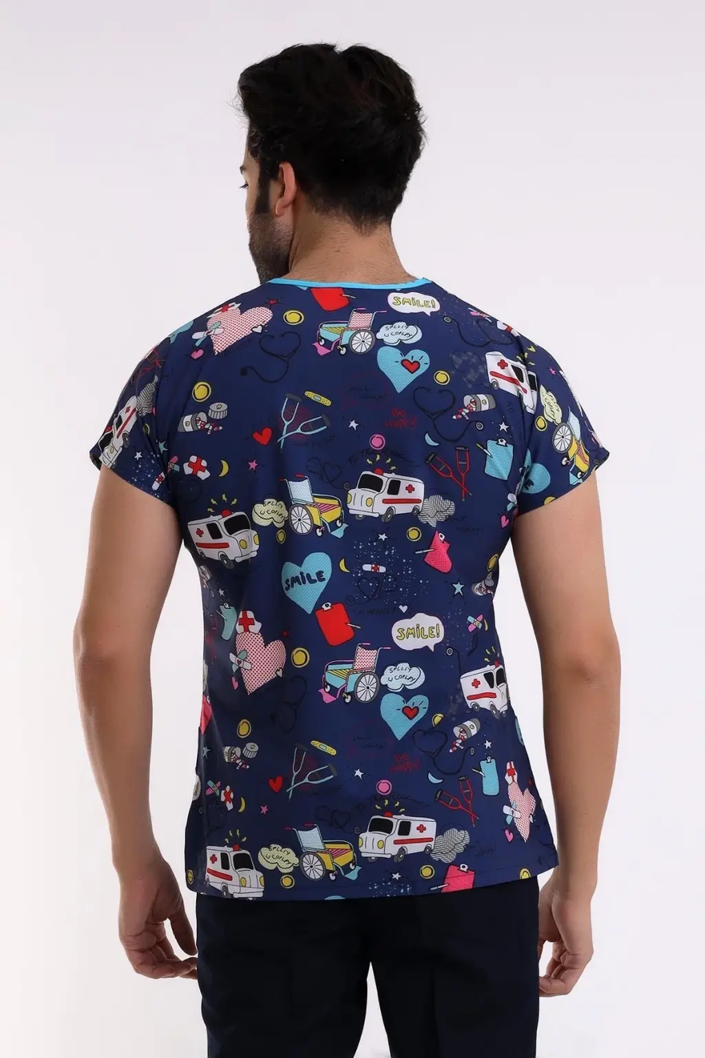 Yarasa Kol Dijital Unisex Desenli Üst - 6525 Lacivert Stetoskop