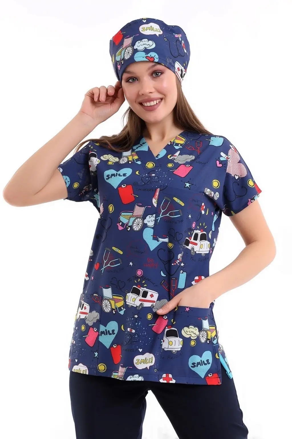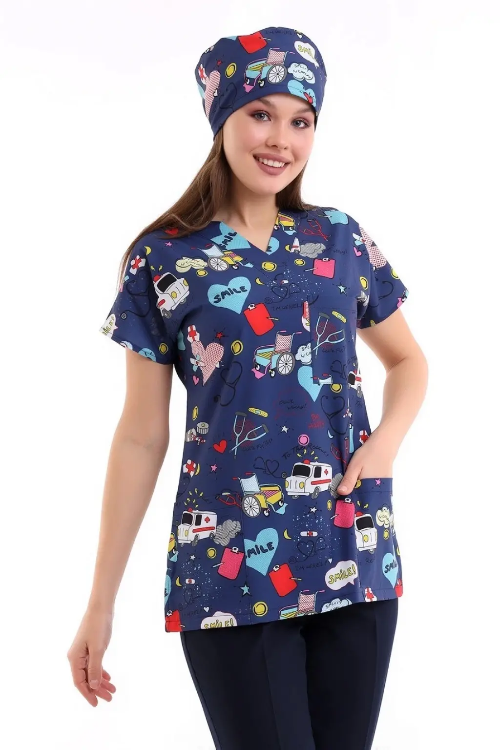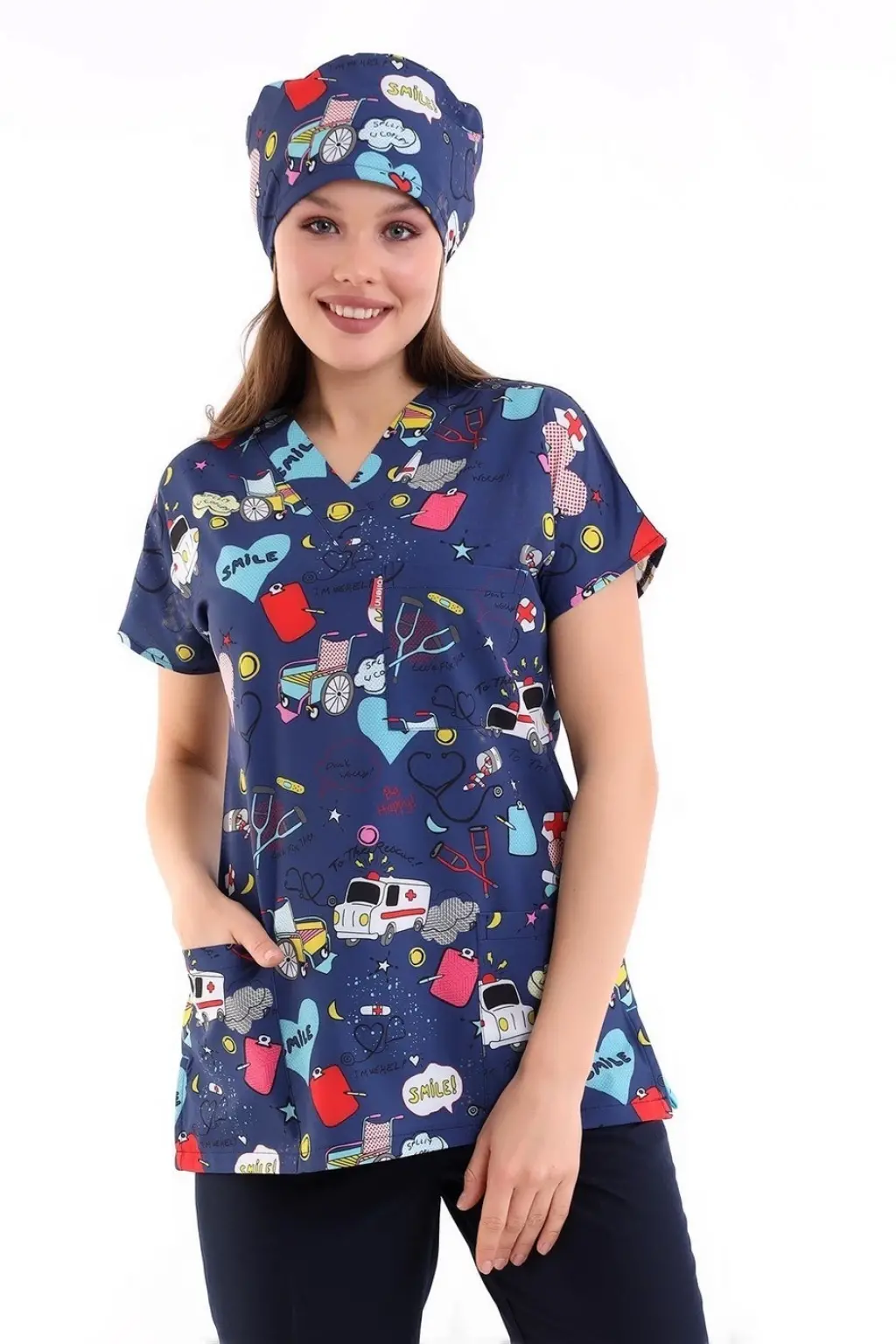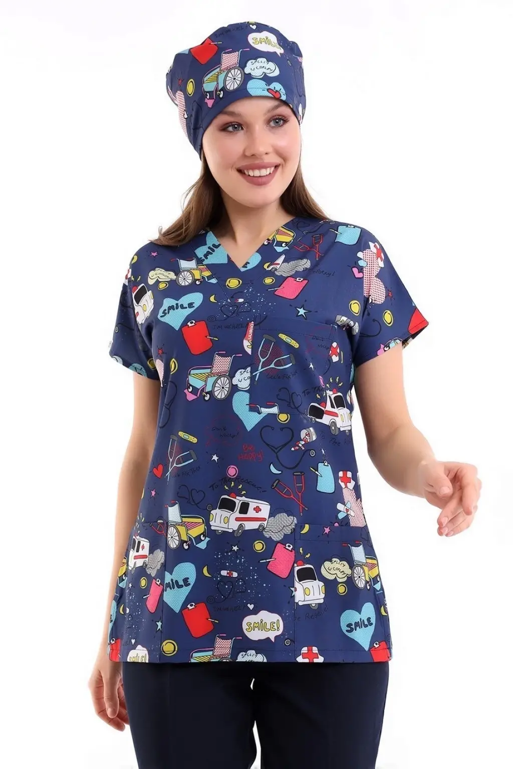 Yarasa Kol Dijital Unisex Desenli Üst - 6525 Lacivert Stetoskop