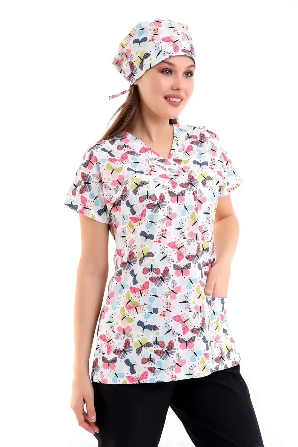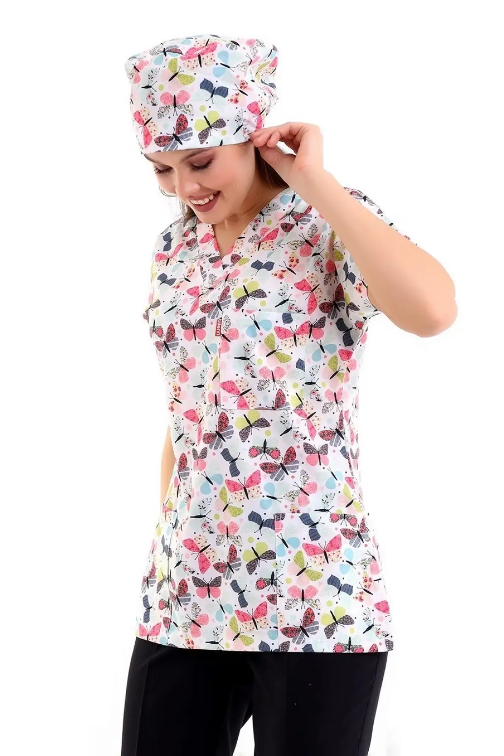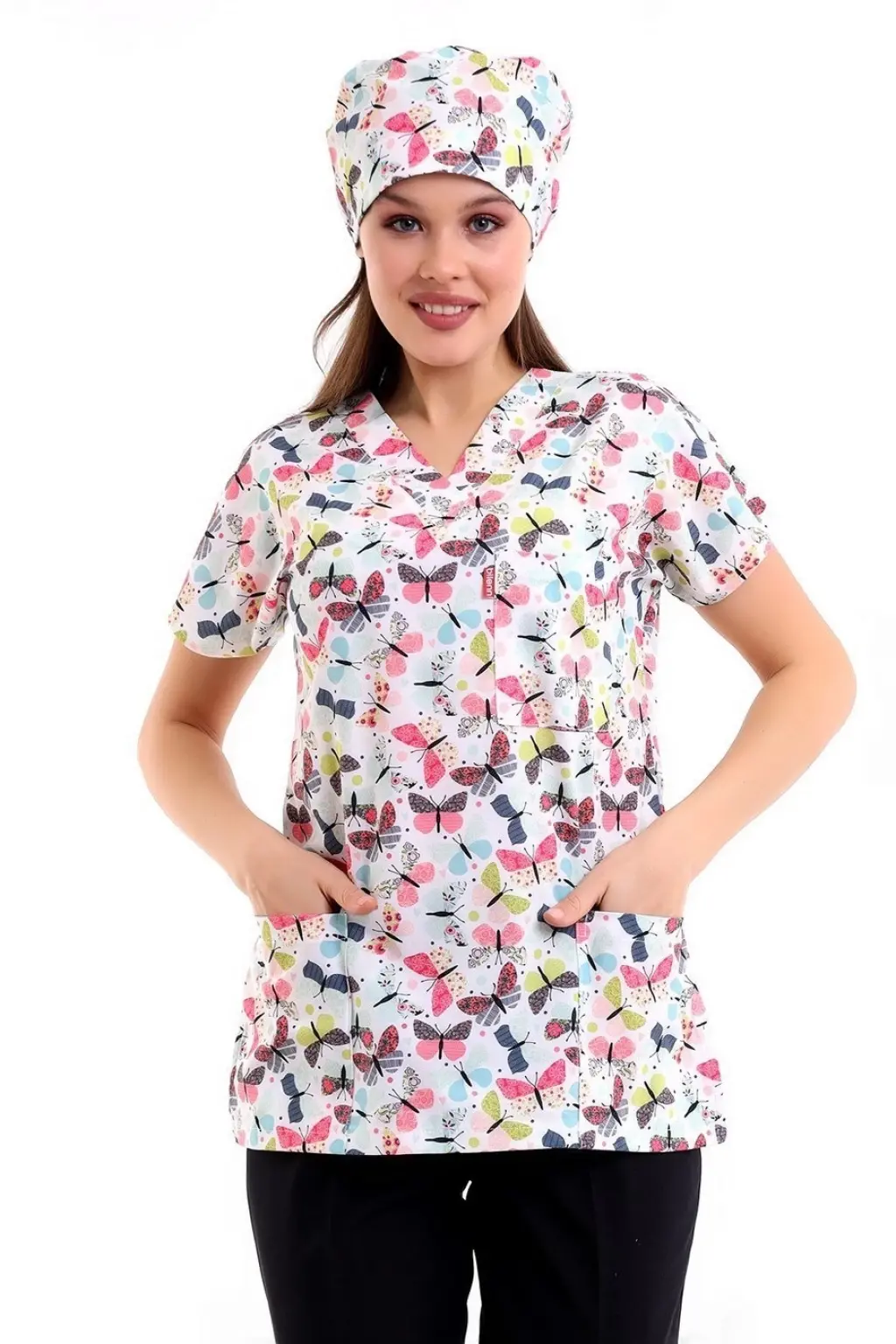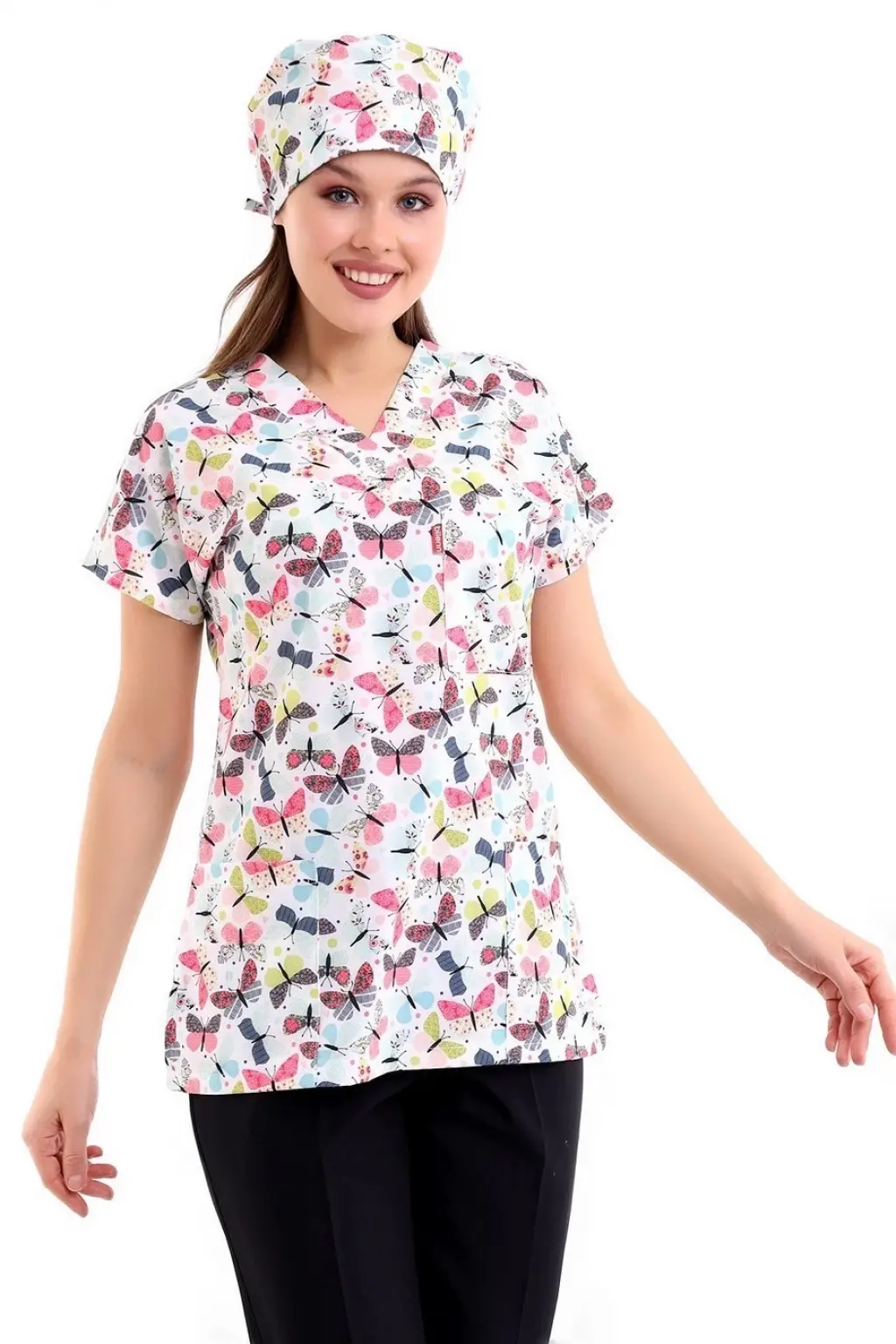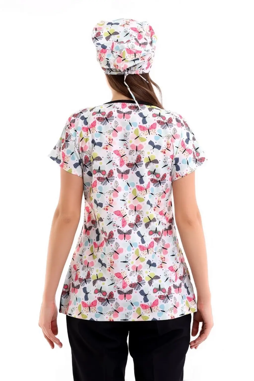 Yarasa Kol Dijital Unisex Desenli Üst - 6527 Beyaz Kelebek