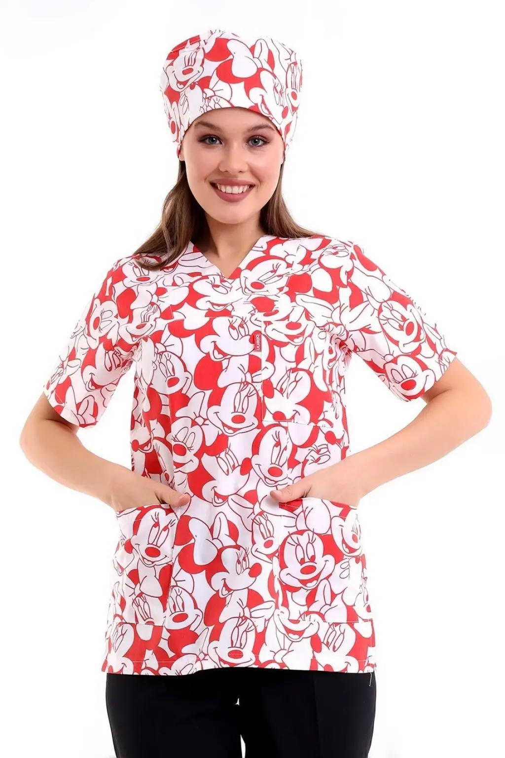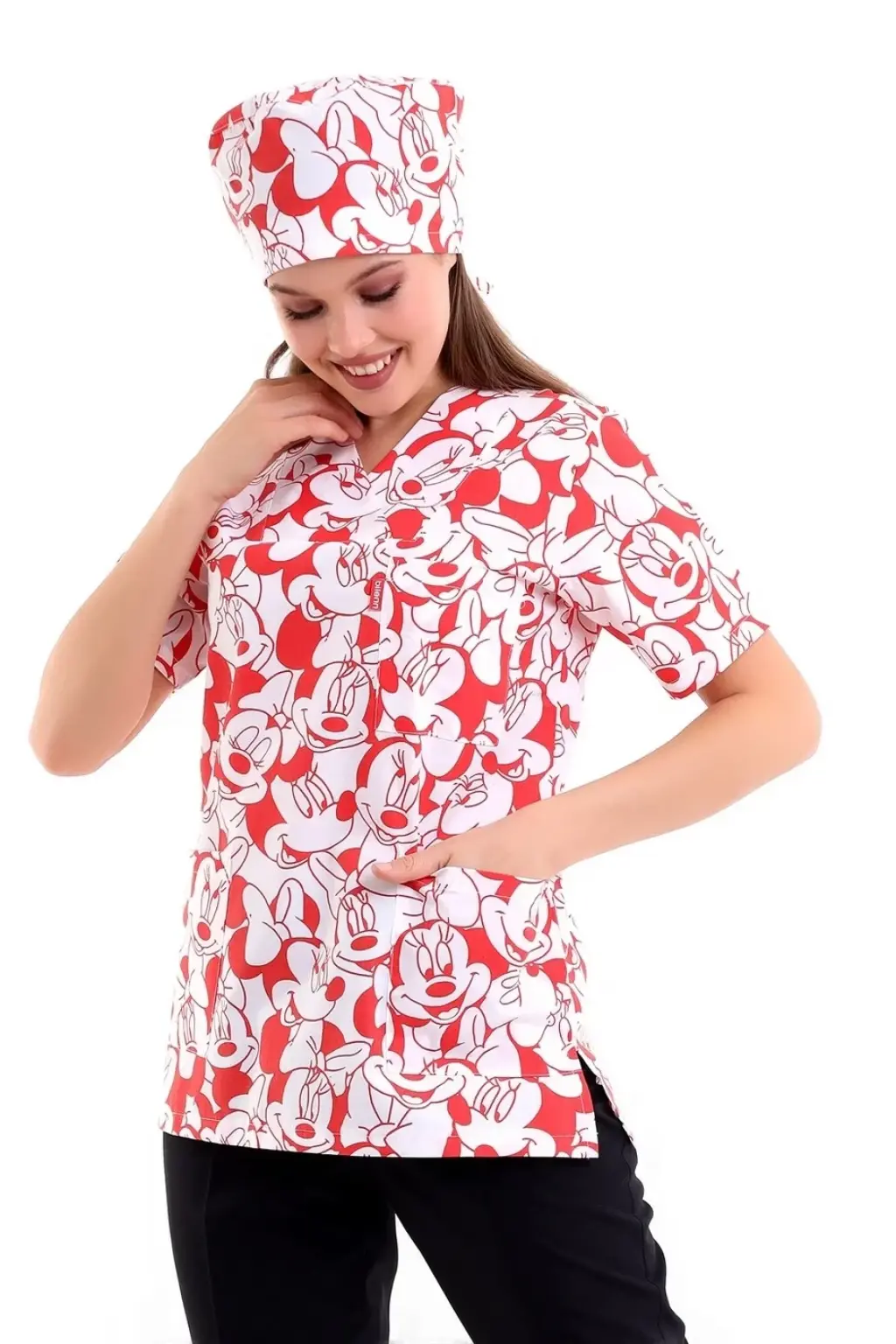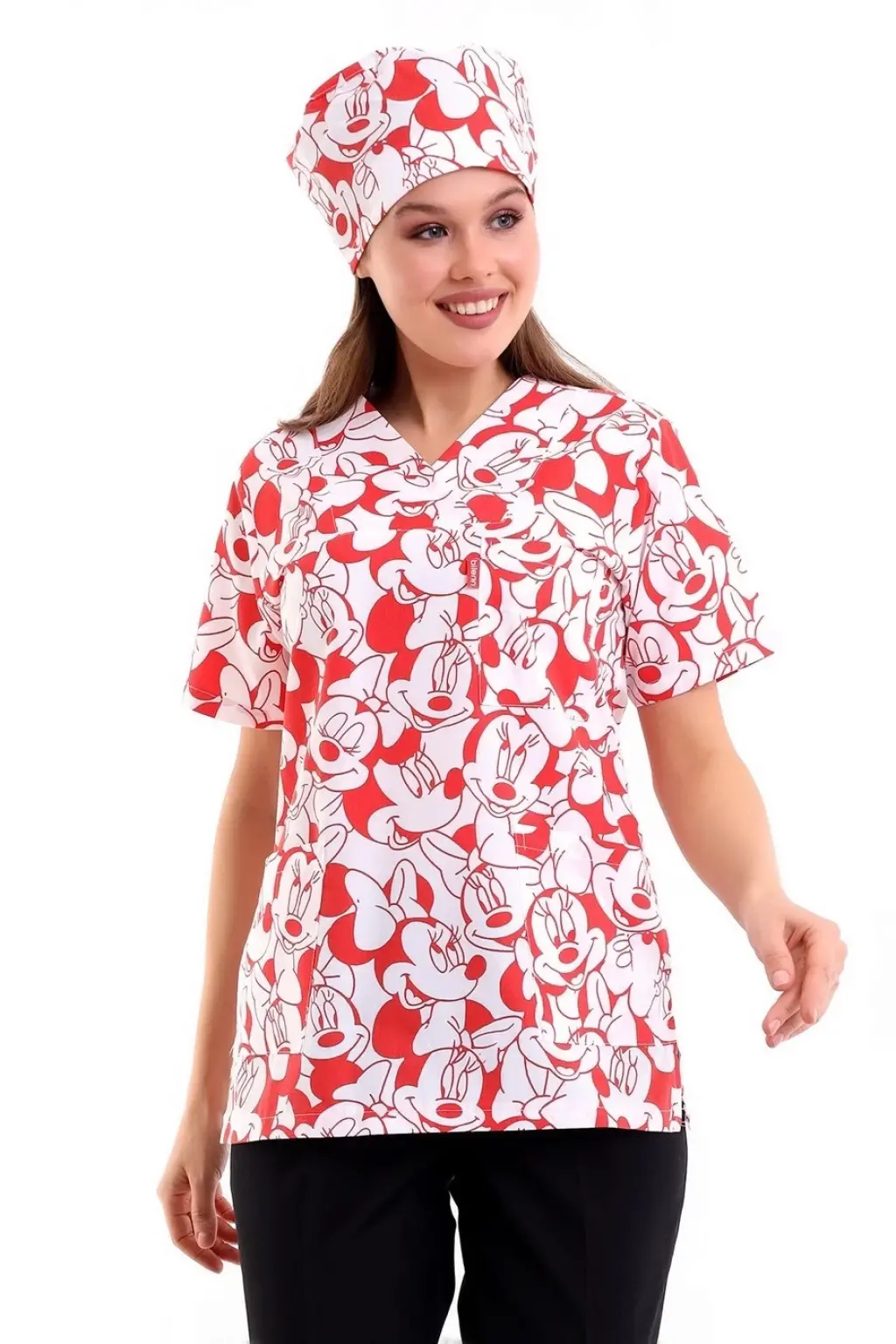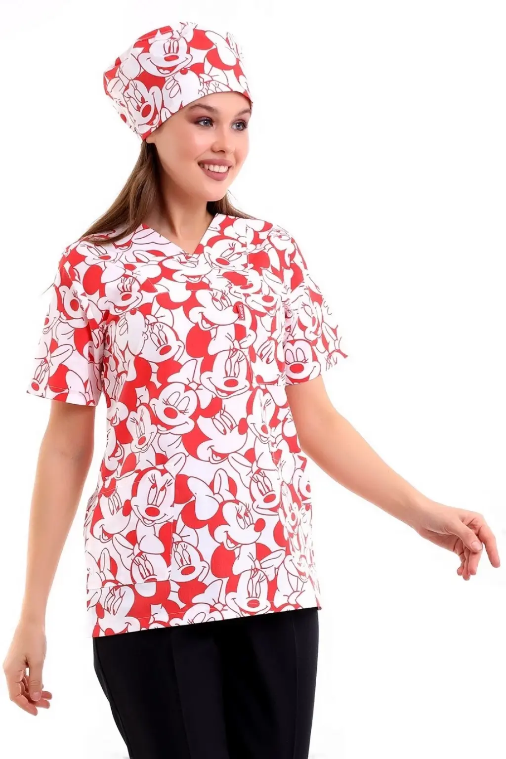 Zarf Yaka Desenli Üst - 11001 Kırmızı Micky