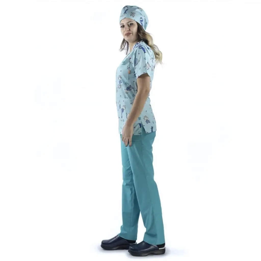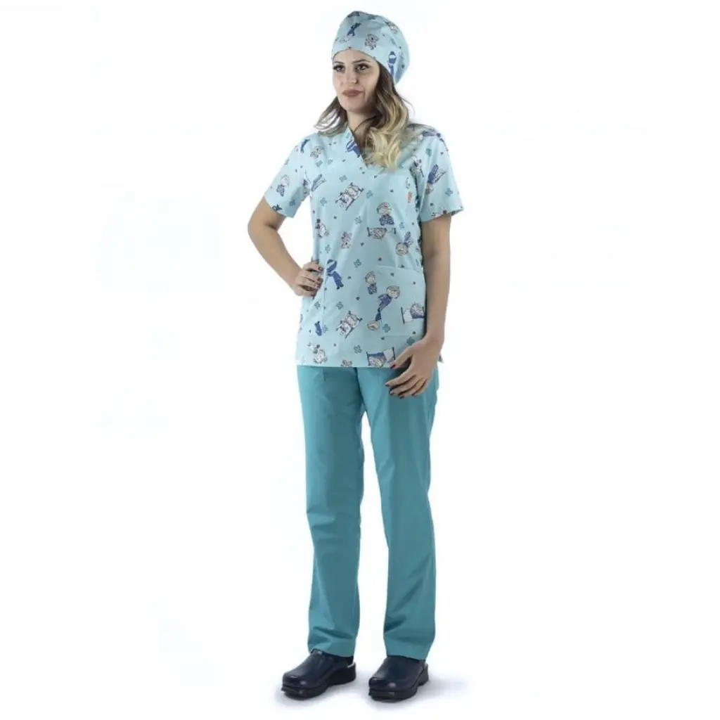 Zarf Yaka Desenli Üst - 3702 Su Yeşili Sağlıkçı