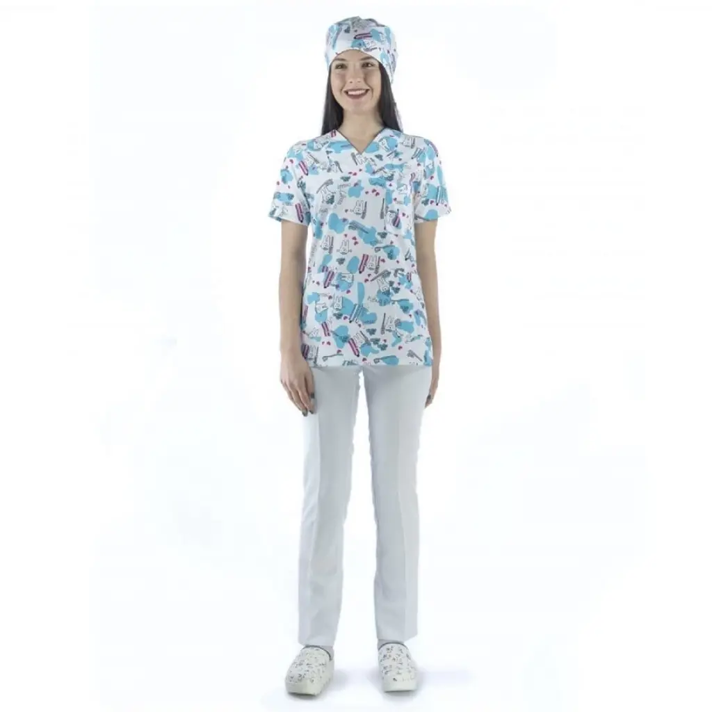 Zarf Yaka Desenli Üst - 4101 Smile Diş