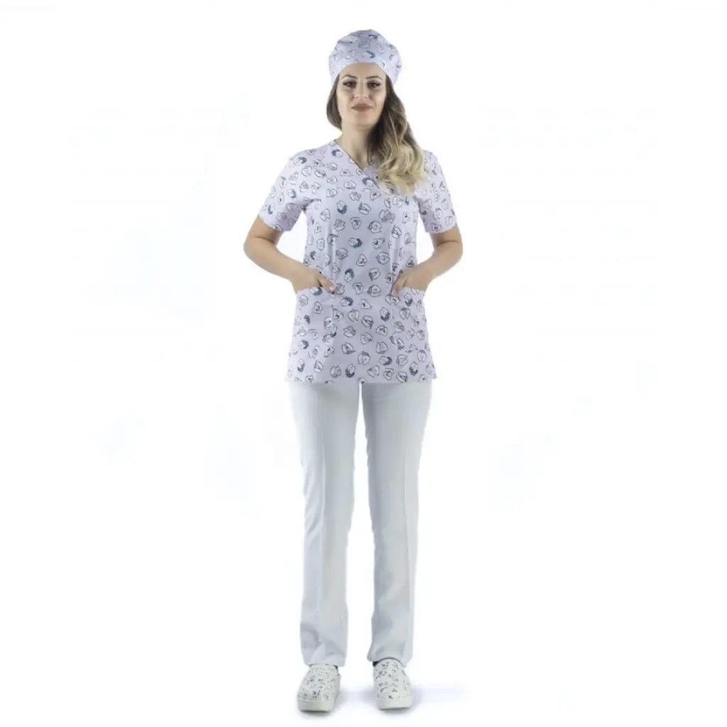 Zarf Yaka Desenli Üst - 4104 Lila Diş