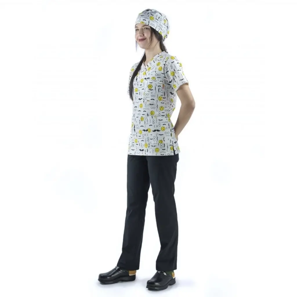Zarf Yaka Desenli Üst - 4106 Emoji