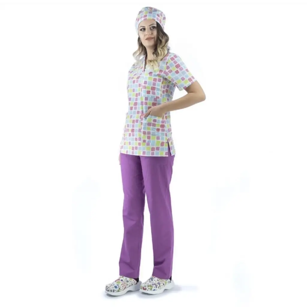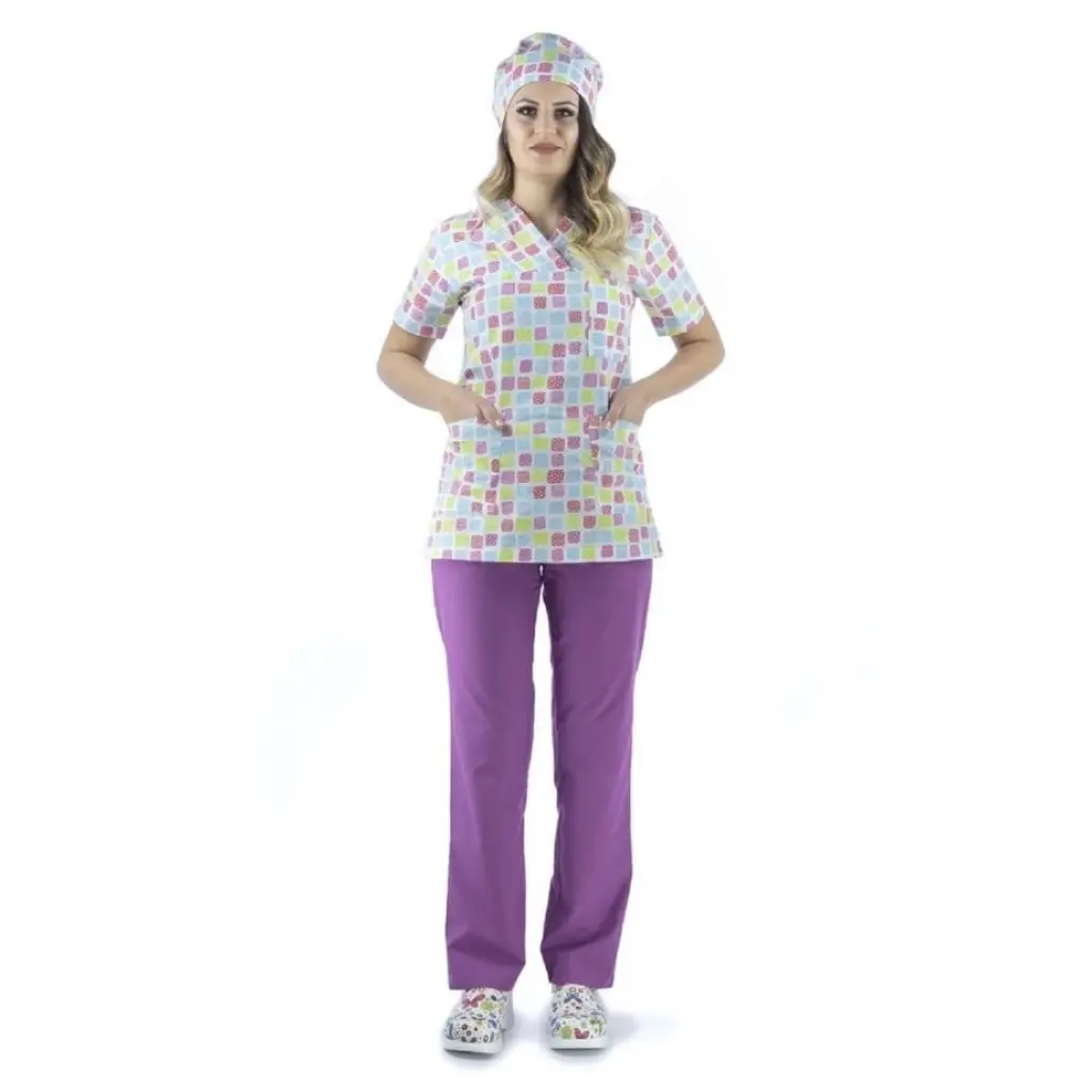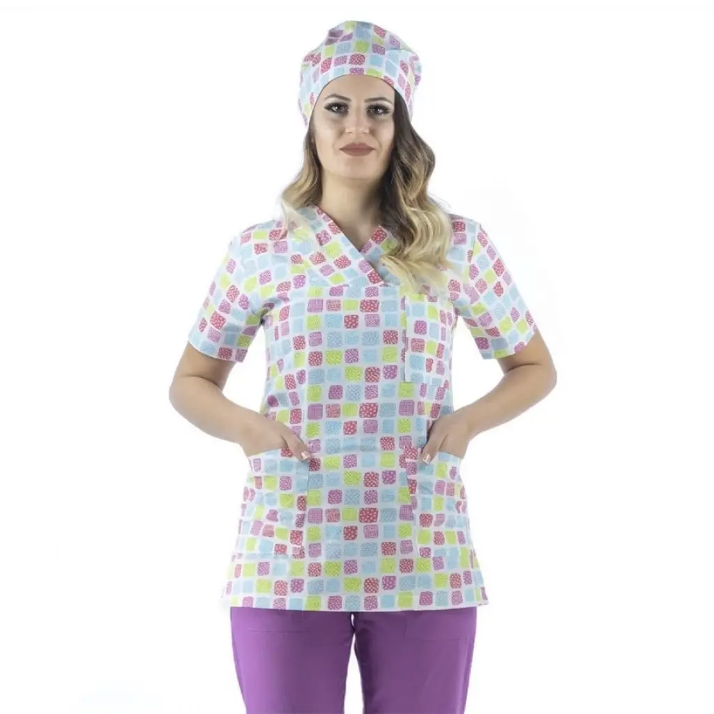 Zarf Yaka Desenli Üst - 5303 Kare Renkli