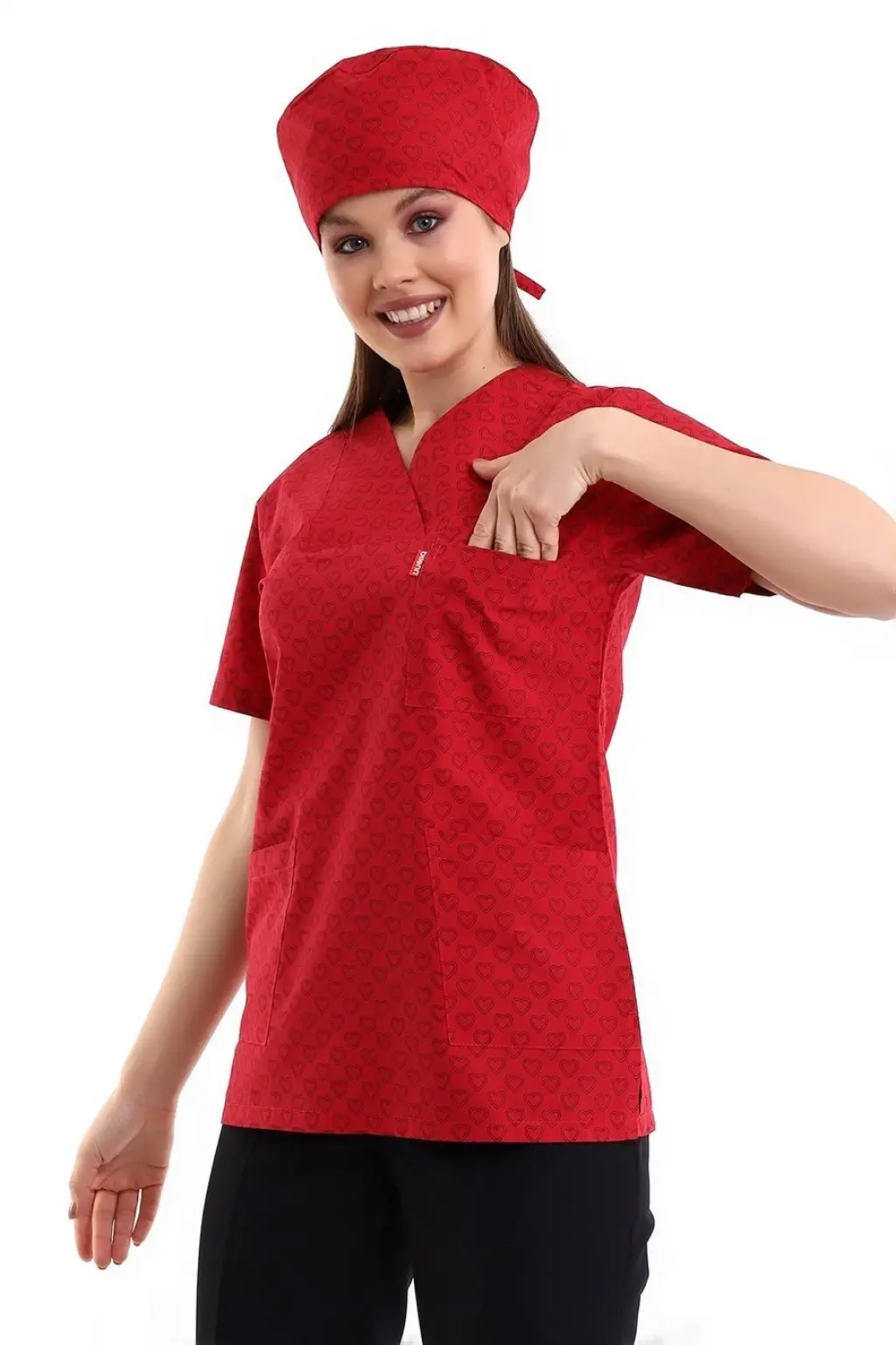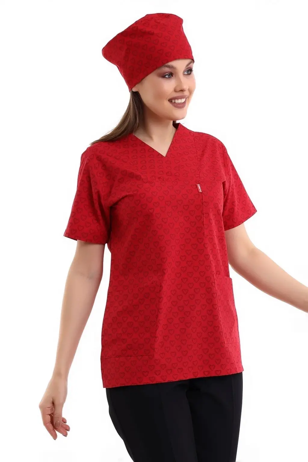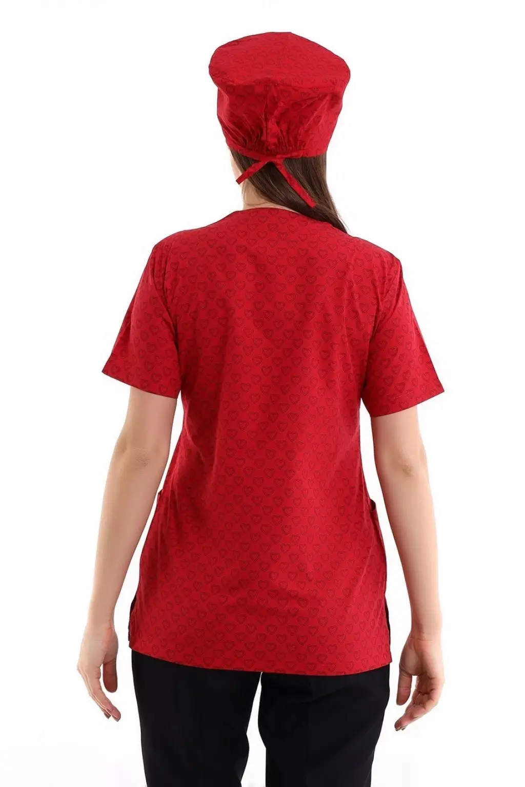 Zarf Yaka Desenli Üst - 5308 Kırmızı Küçük Kalp