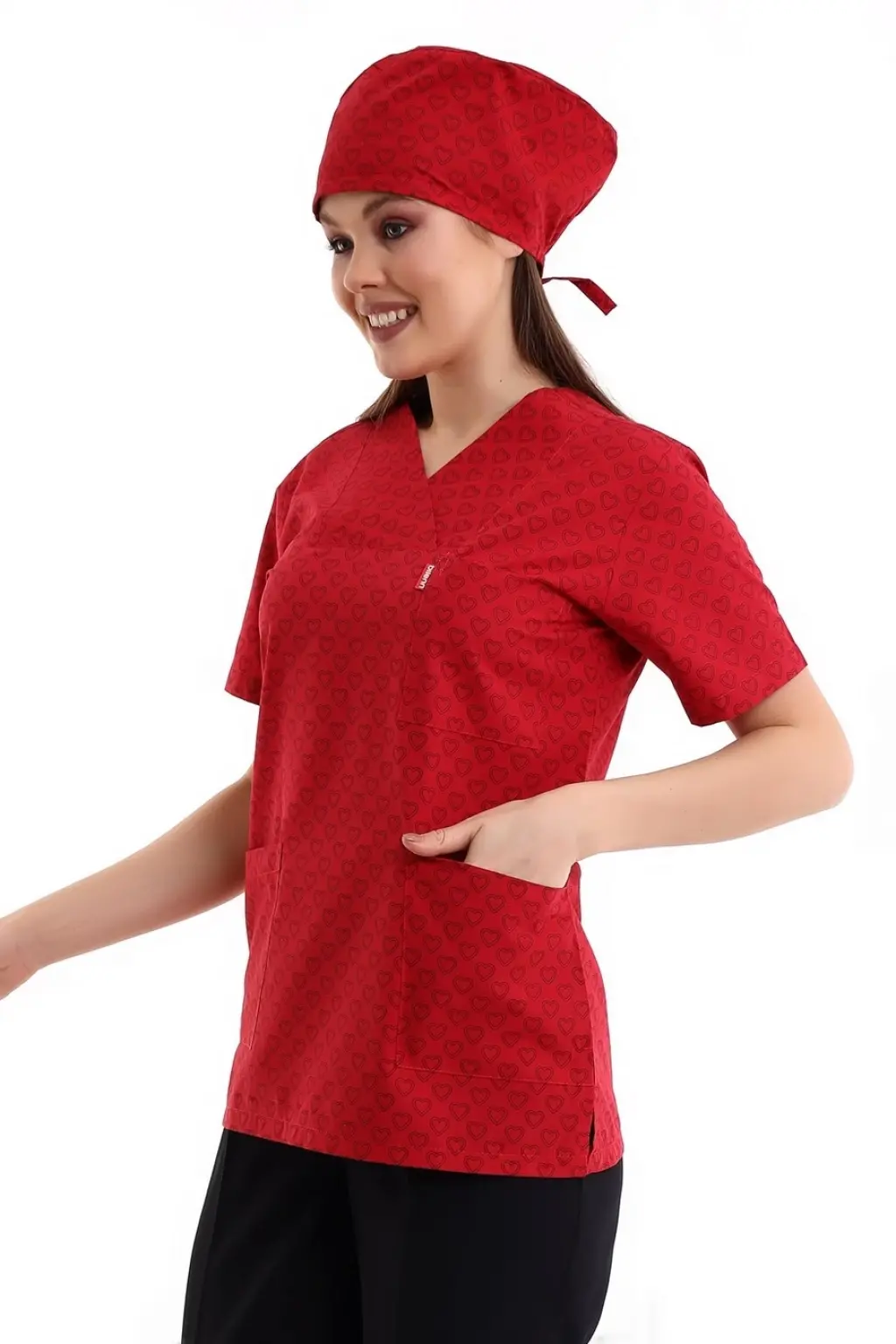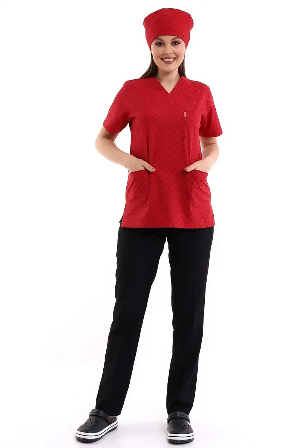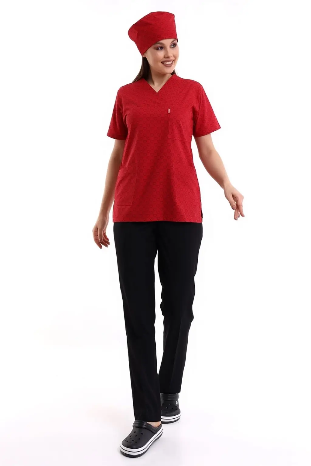 Zarf Yaka Desenli Üst - 5308 Kırmızı Küçük Kalp