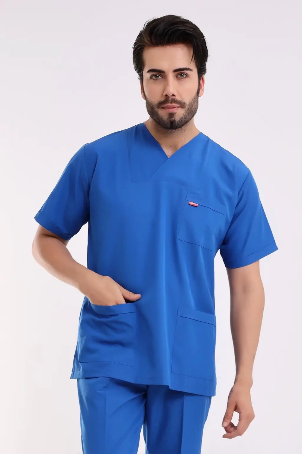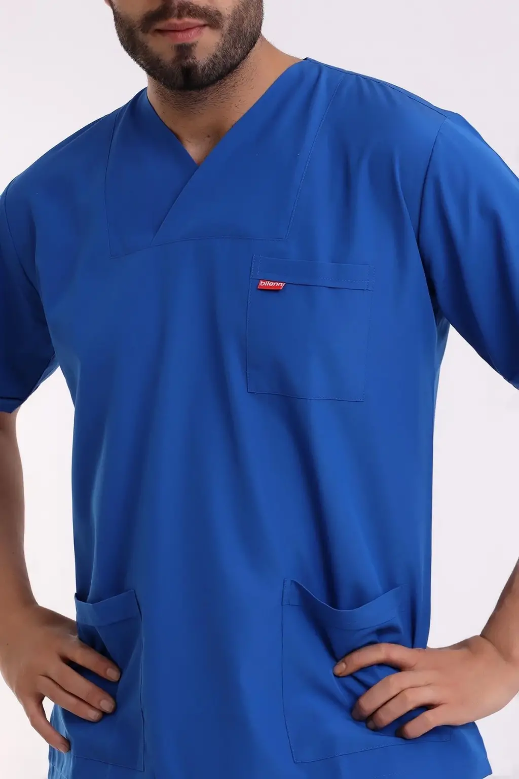 Zarf Yaka Erkek Likralı Tek Üst - 6411 Saks Mavi
