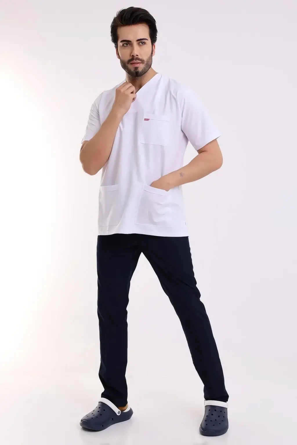 Zarf Yaka Erkek Takım - Beyaz Lacivert