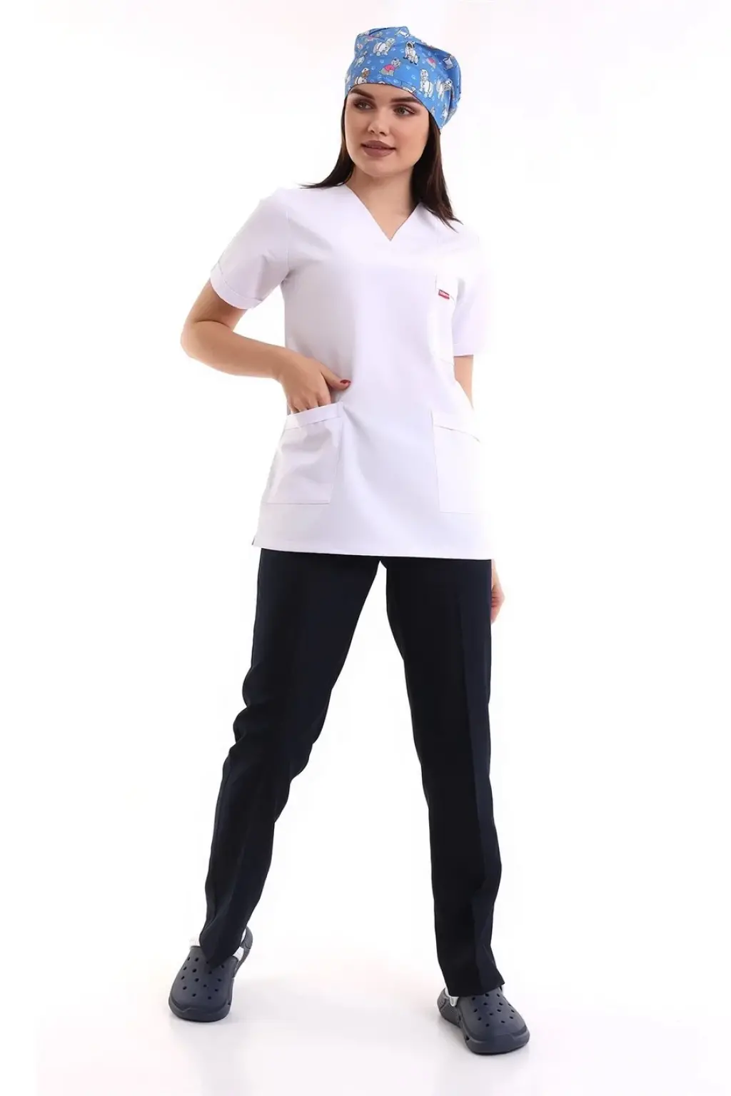 Zarf Yaka Kadın Takım - Beyaz Lacivert