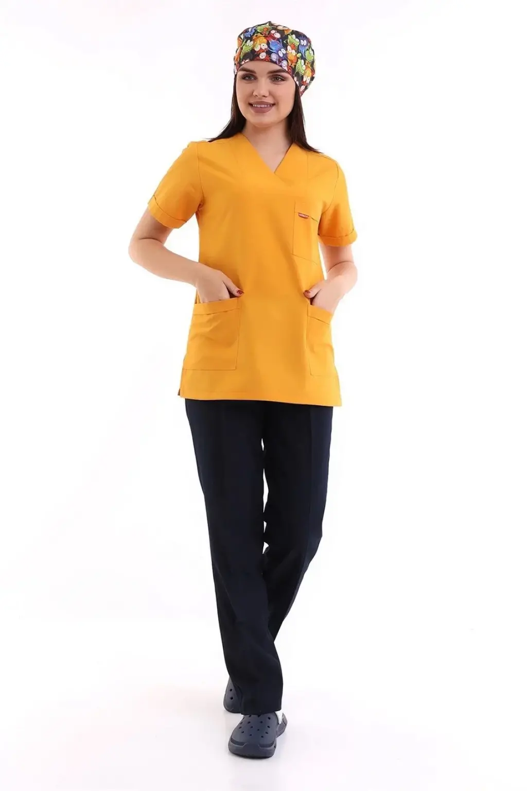 Zarf Yaka Kadın Takım - Hardal Lacivert