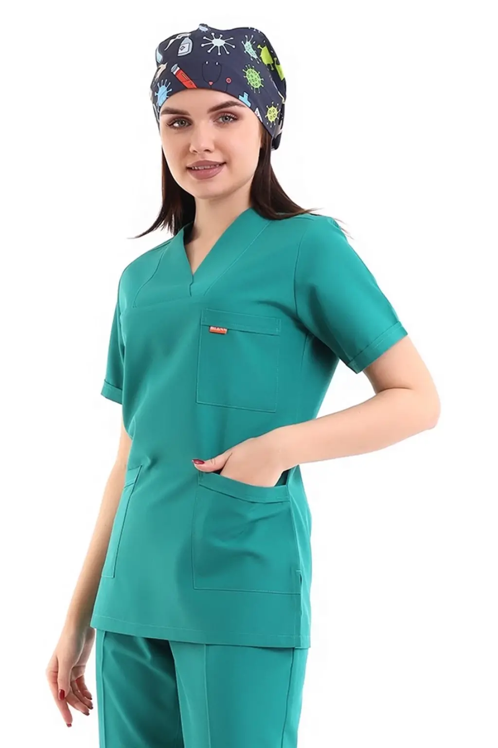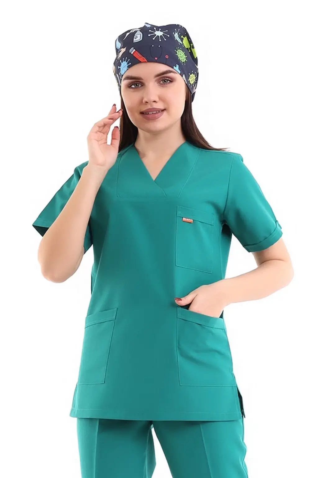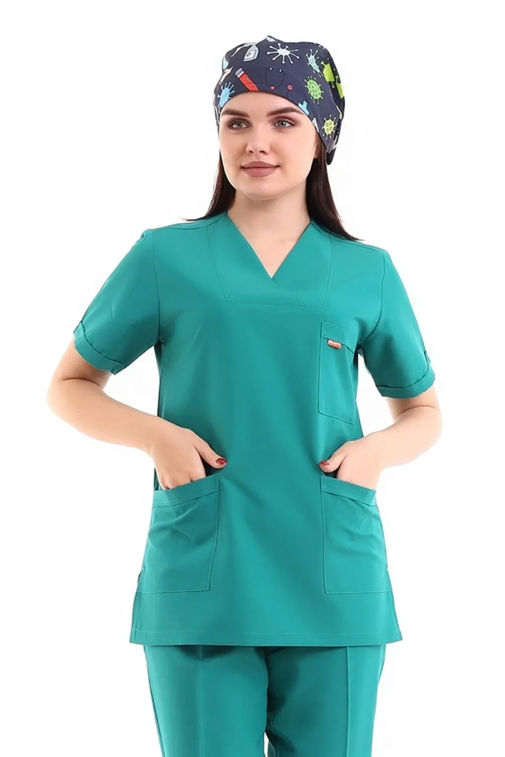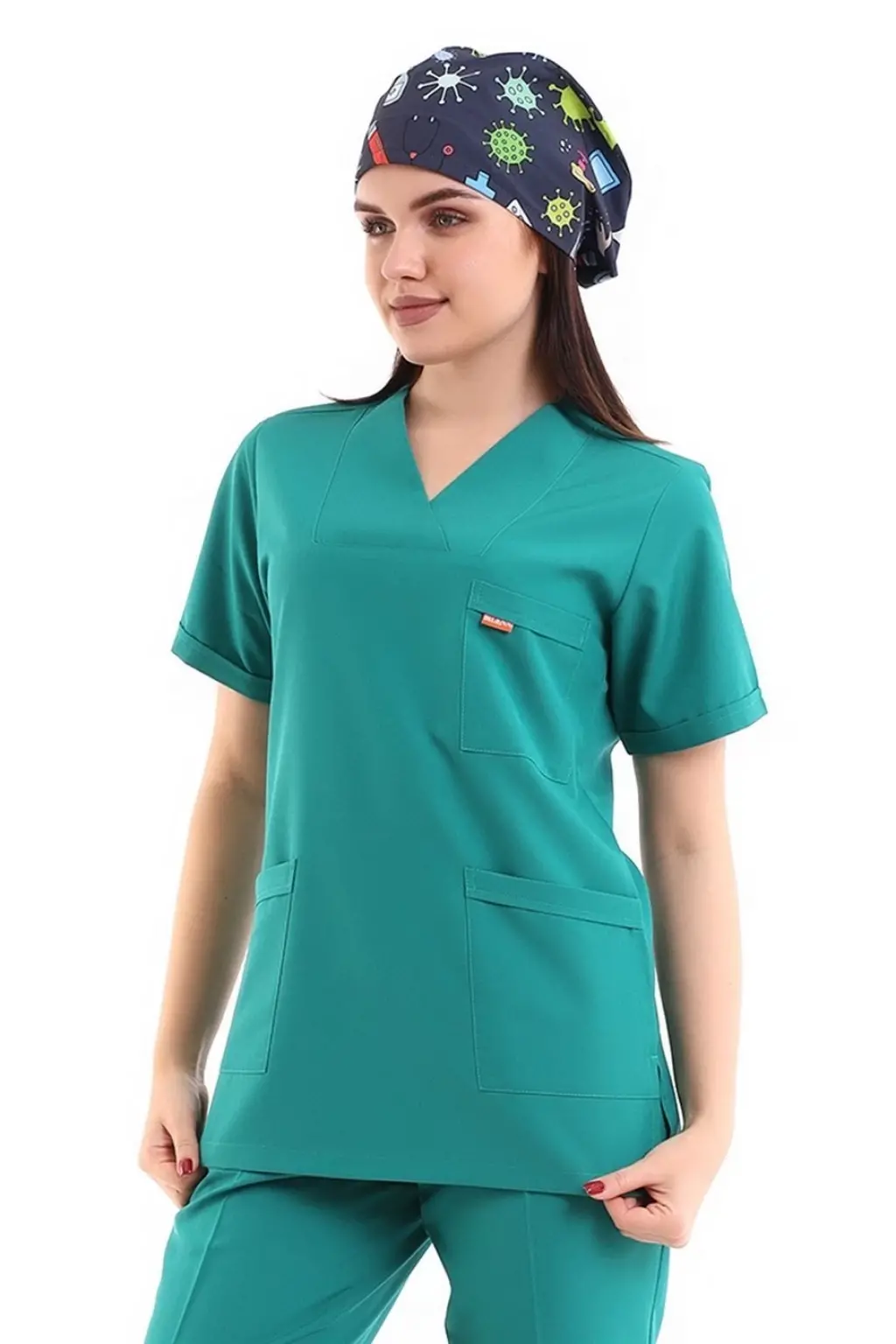 Zarf Yaka Kadın Tek Üst - 30 Ameliyathane Yeşili